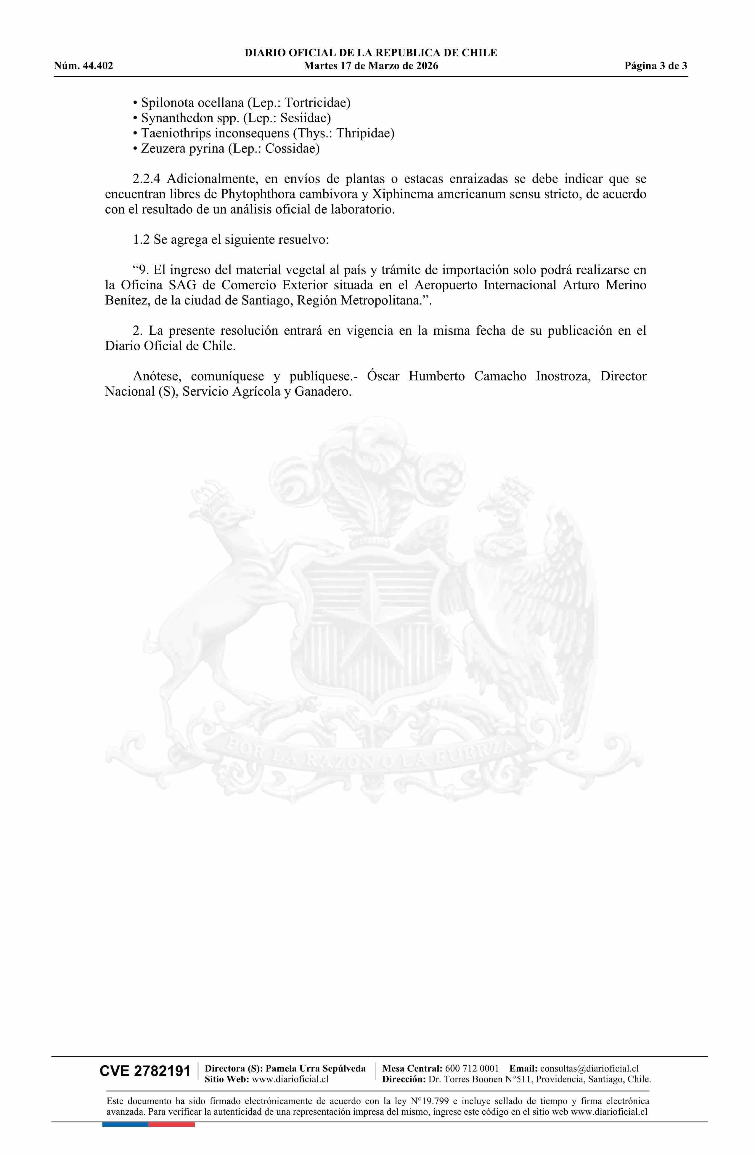 Título: Resolución exenta número 1.835, de 2026.- Modifica resolución N° 6.315, de 2013, que establece requisitos fitosanitarios de importación para plantas, estacas y ramillas de cerezo, procedentes de Canadá