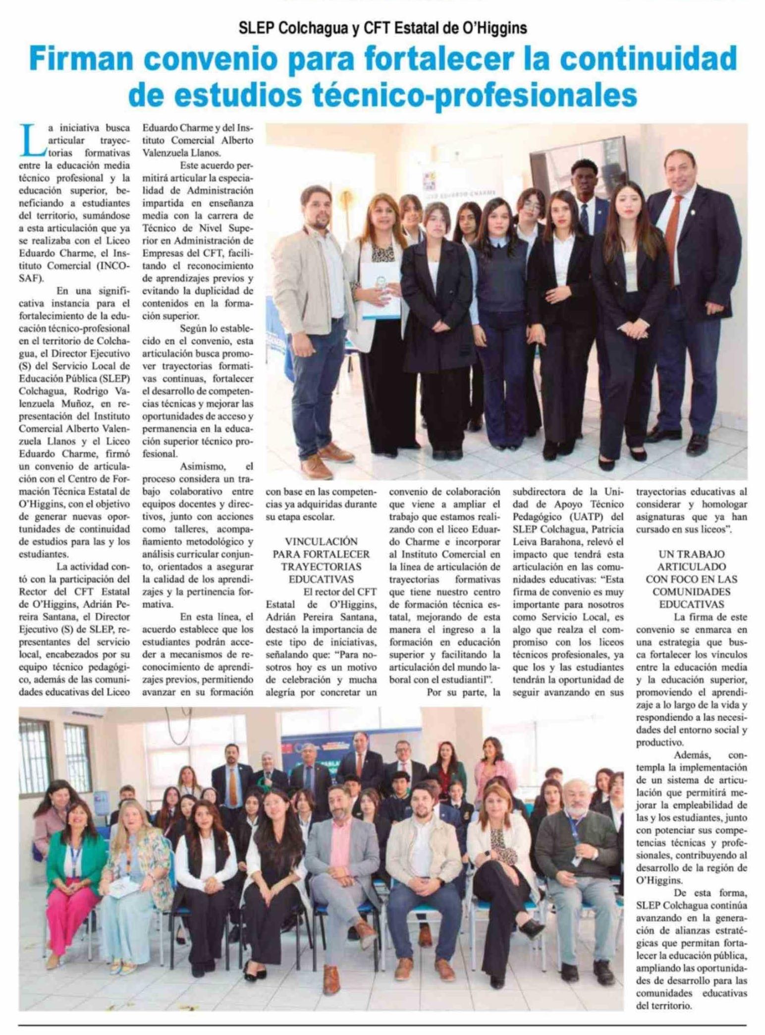Firman convenio para fortalecer la continuidad de estudios técnico-profesionales
