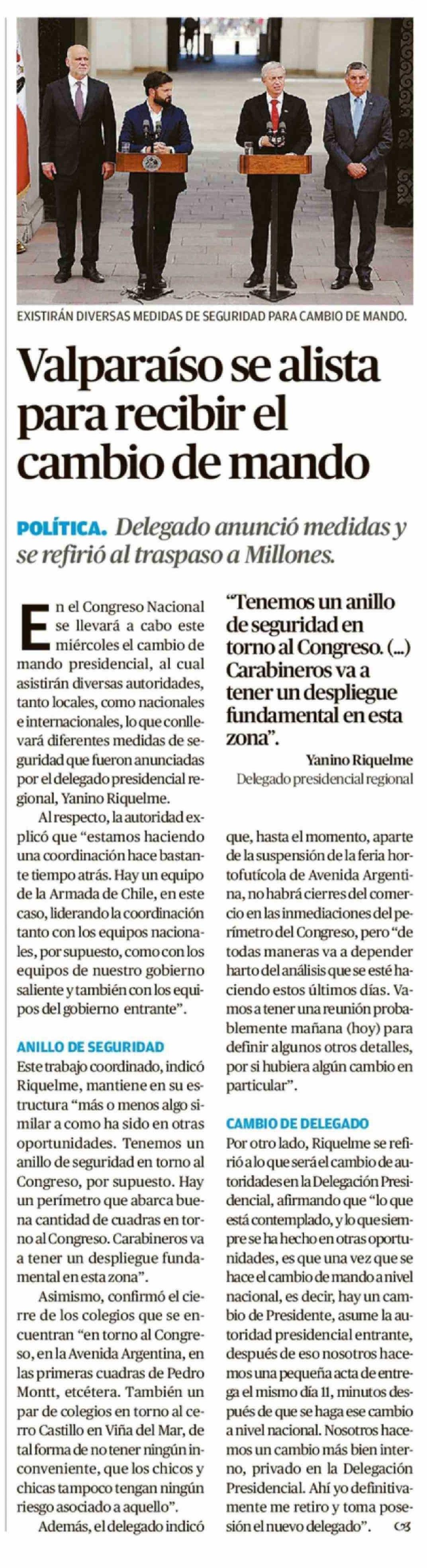 Valparaíso se alista para recibir el cambio de mando