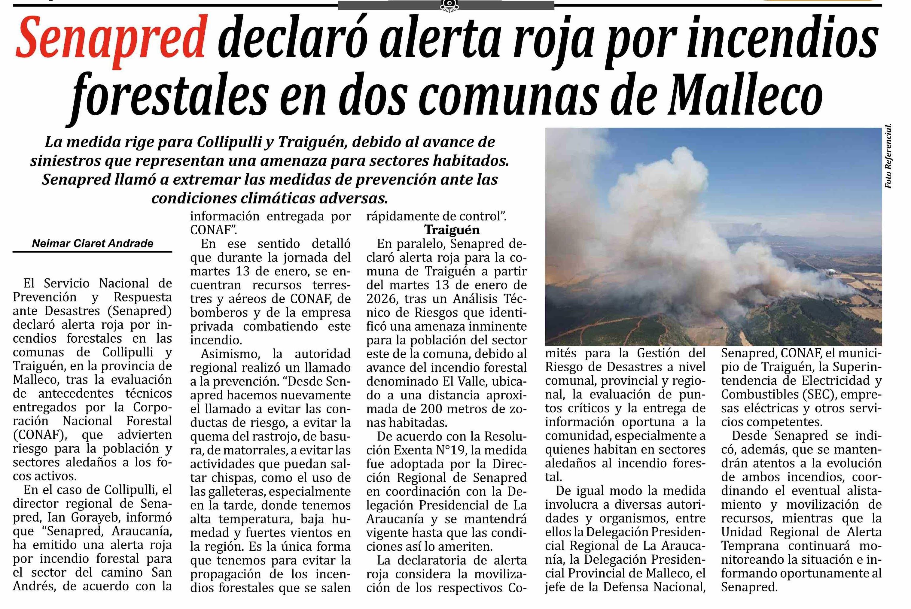 Fecha: 15-01-2026 Sector: Noticia general Región: Región de la Araucanía