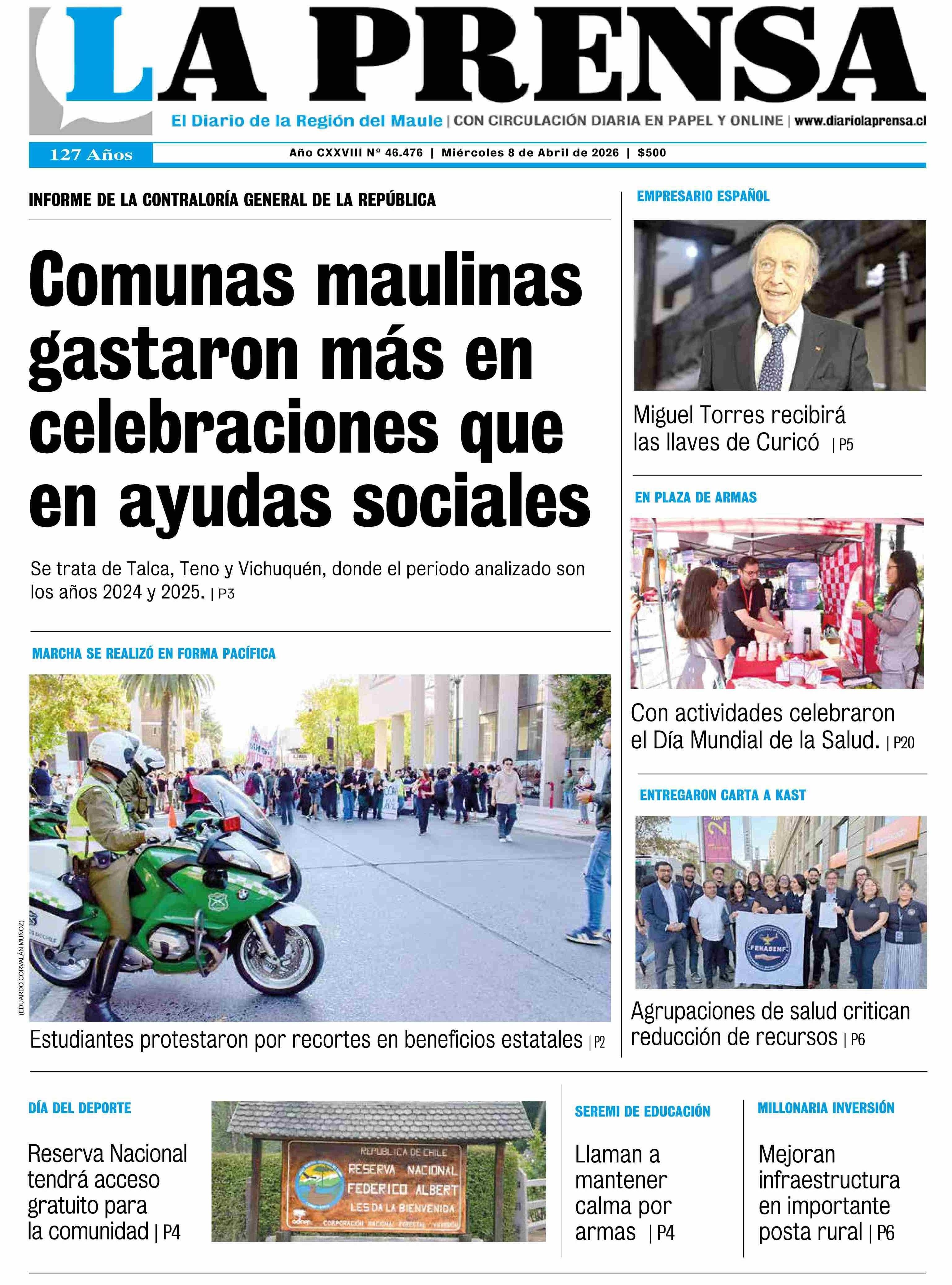 PORTADA LA PRENSA DE CURICÓ - CHILE