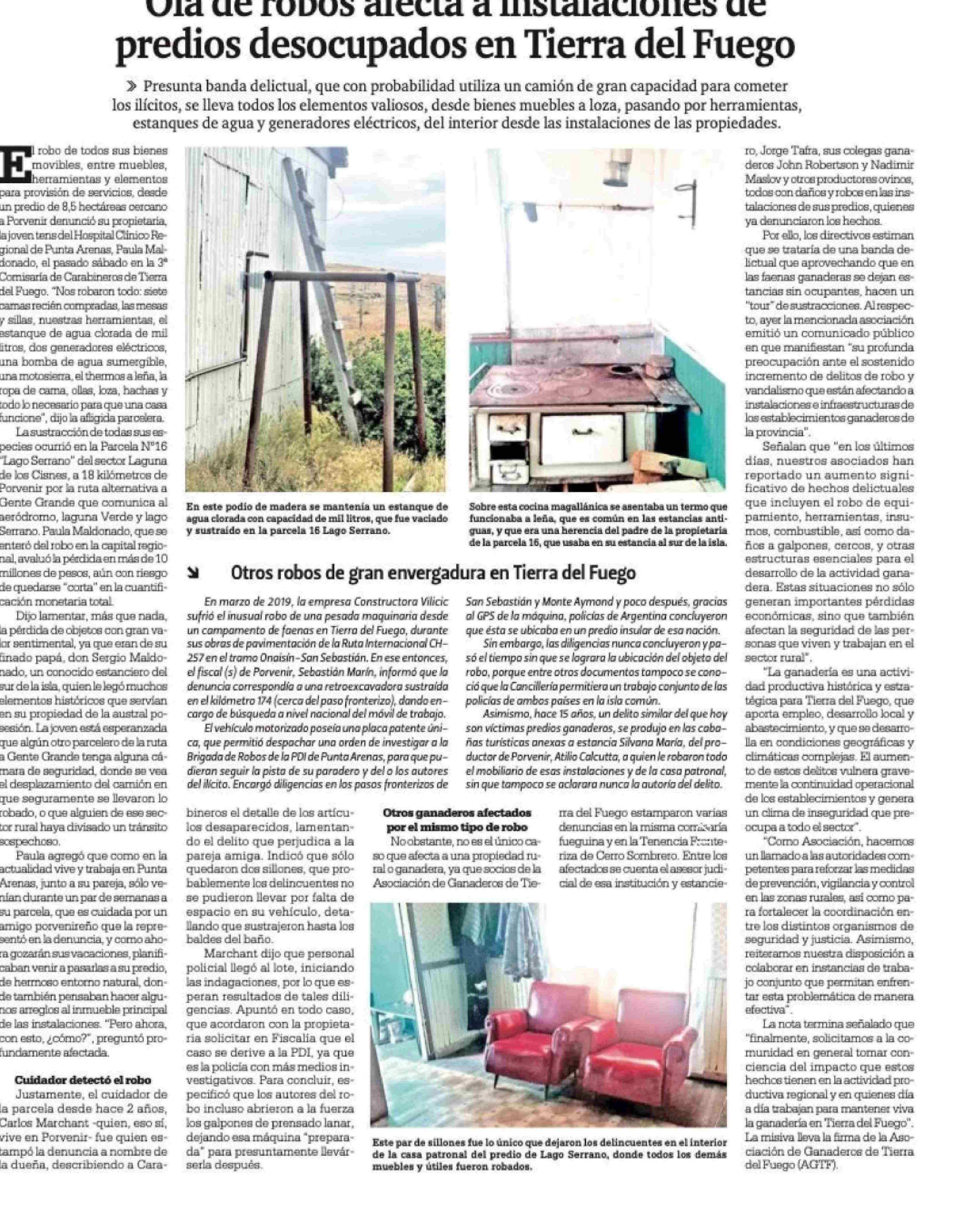 Ola de robos afecta a instalaciones de predios desocupados en Tierra del Fuego