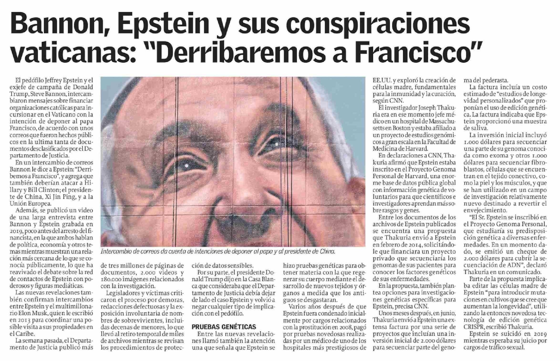 Bannon, Epstein y sus conspiraciones vaticanas: "Derribaremos a Francisco"