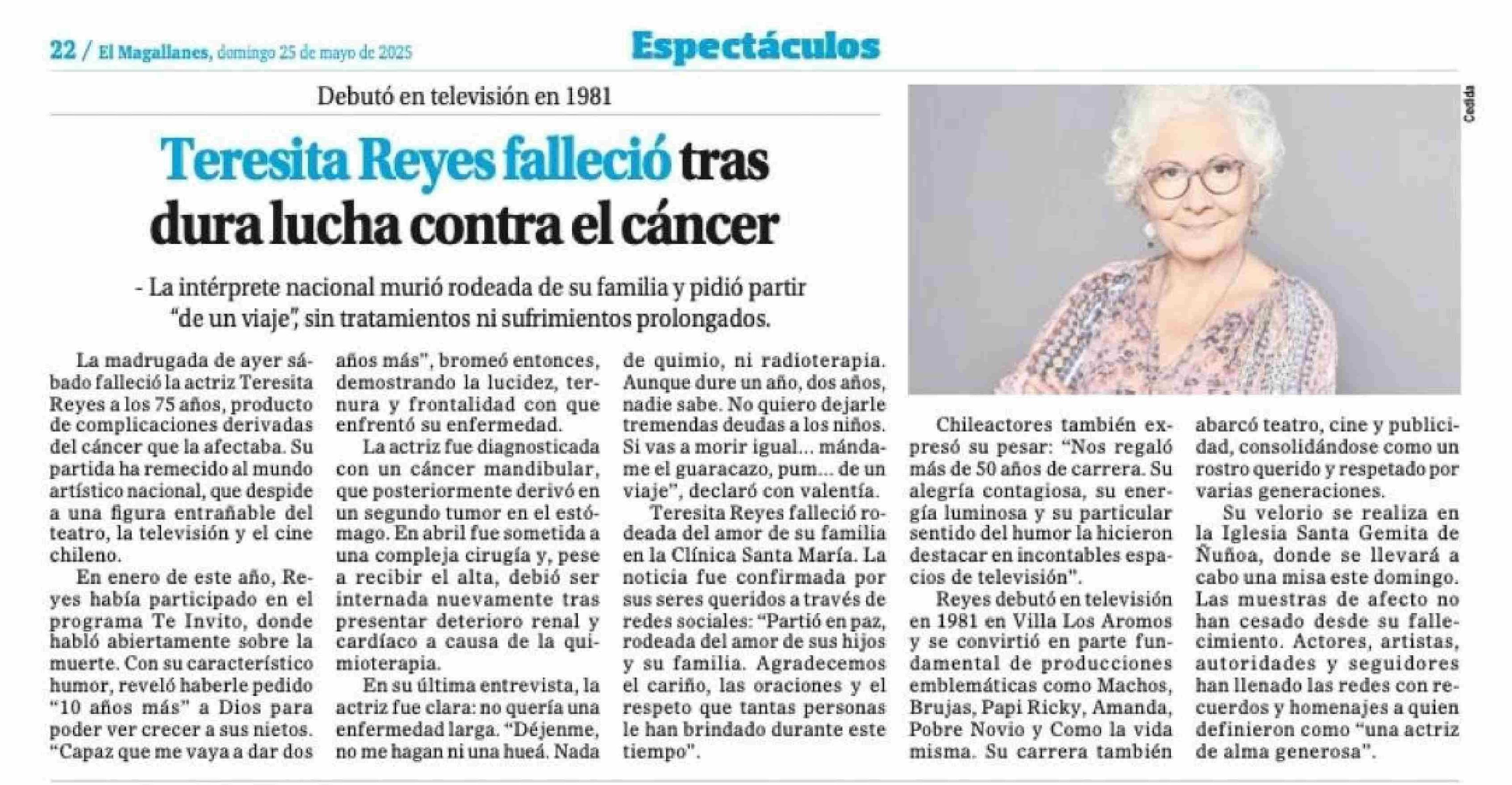 Teresita Reyes falleció tras dura lucha contra el cáncer