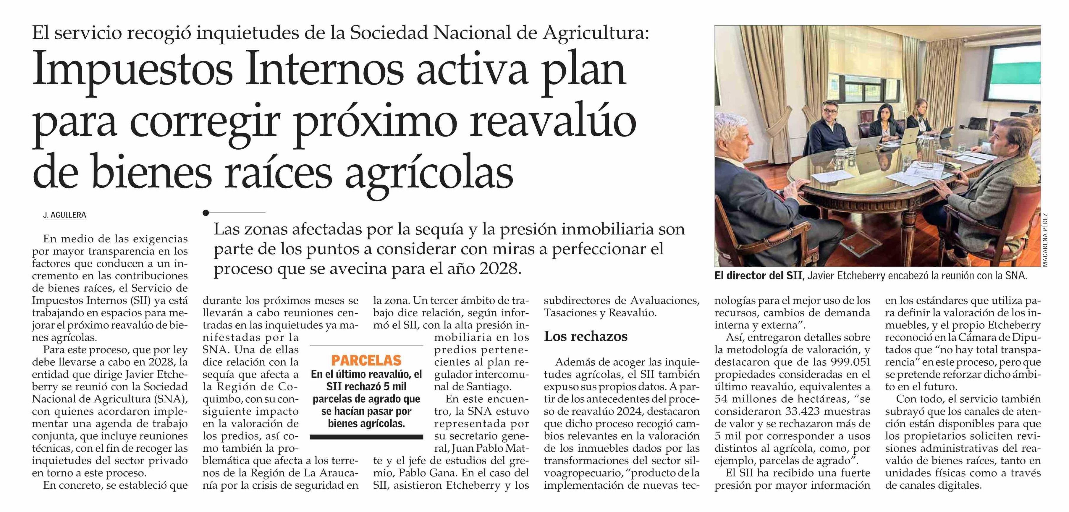 Impuestos Internos activa plan para corregir próximo reavalúo de bienes raíces agrícolas