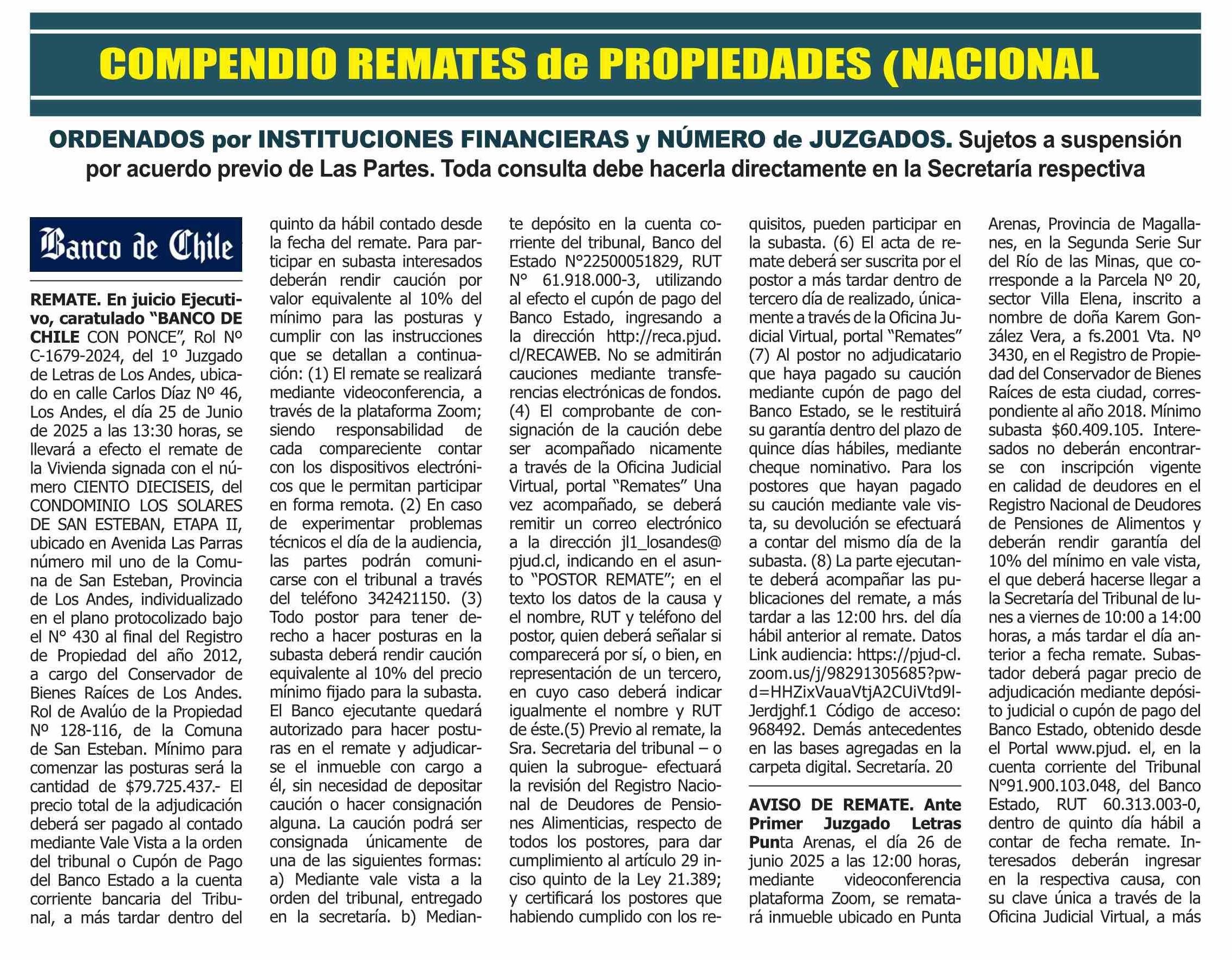 REMATES: COMPENDIO REMATES de PROPIEDADES (NACIONAL