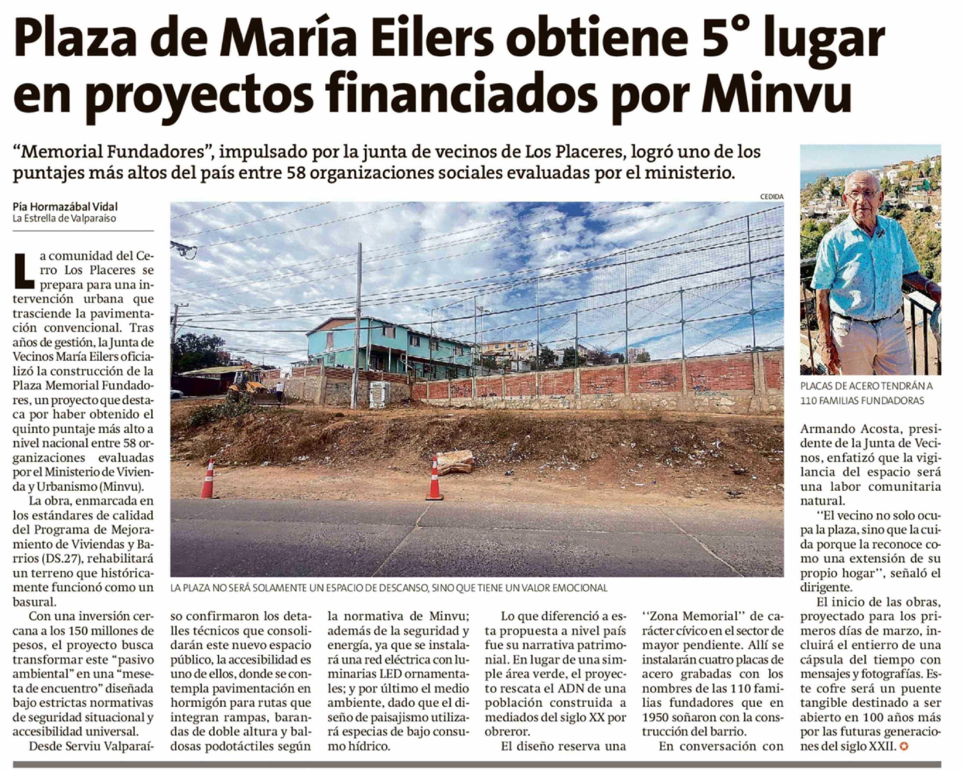 Plaza de María Eilers obtiene 5º lugar en proyectos financiados por Minvu