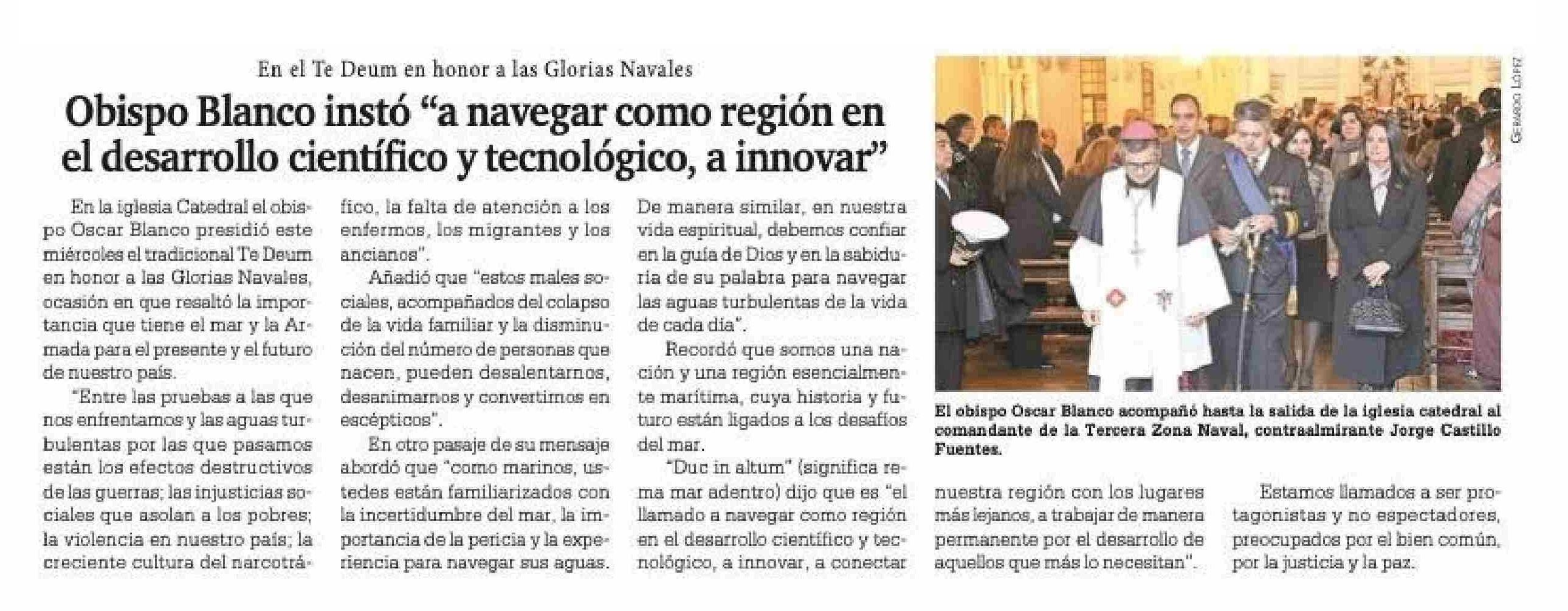 Obispo Blanco instó “a navegar como región en el desarrollo científico y tecnológico, a innovar”