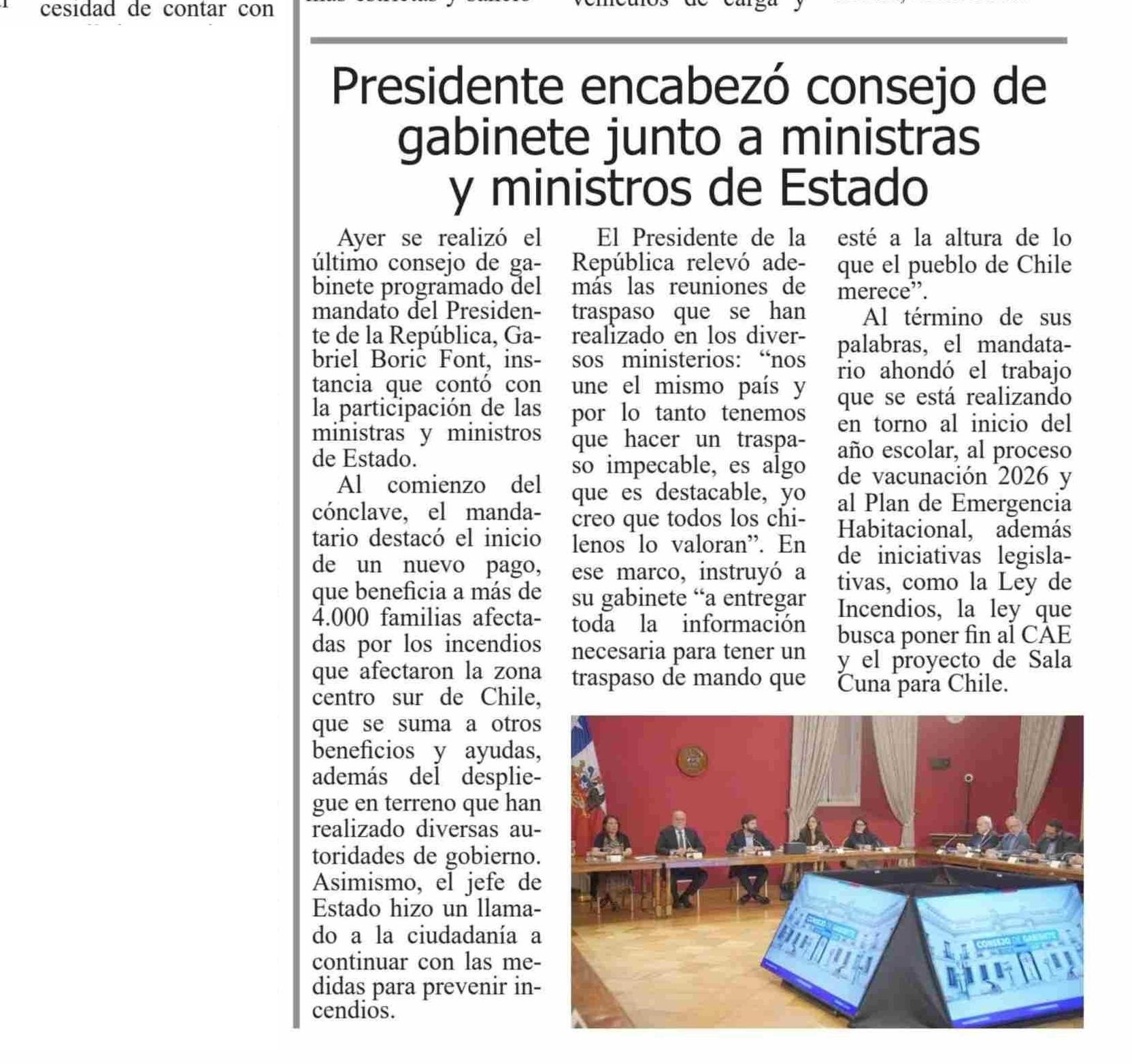 Presidente encabezó consejo de gabinete junto a ministras y ministros de Estado