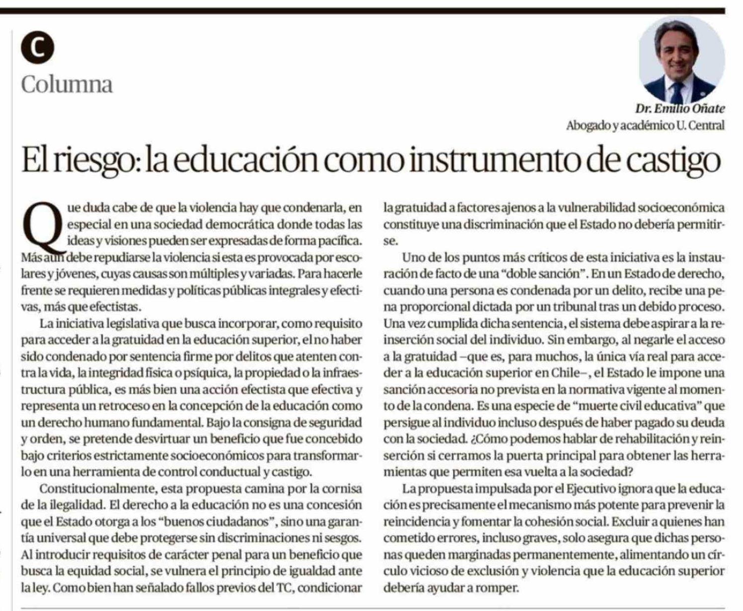 Título: Columnas de Opinión: El riesgo: la educación como instrumento de castigo