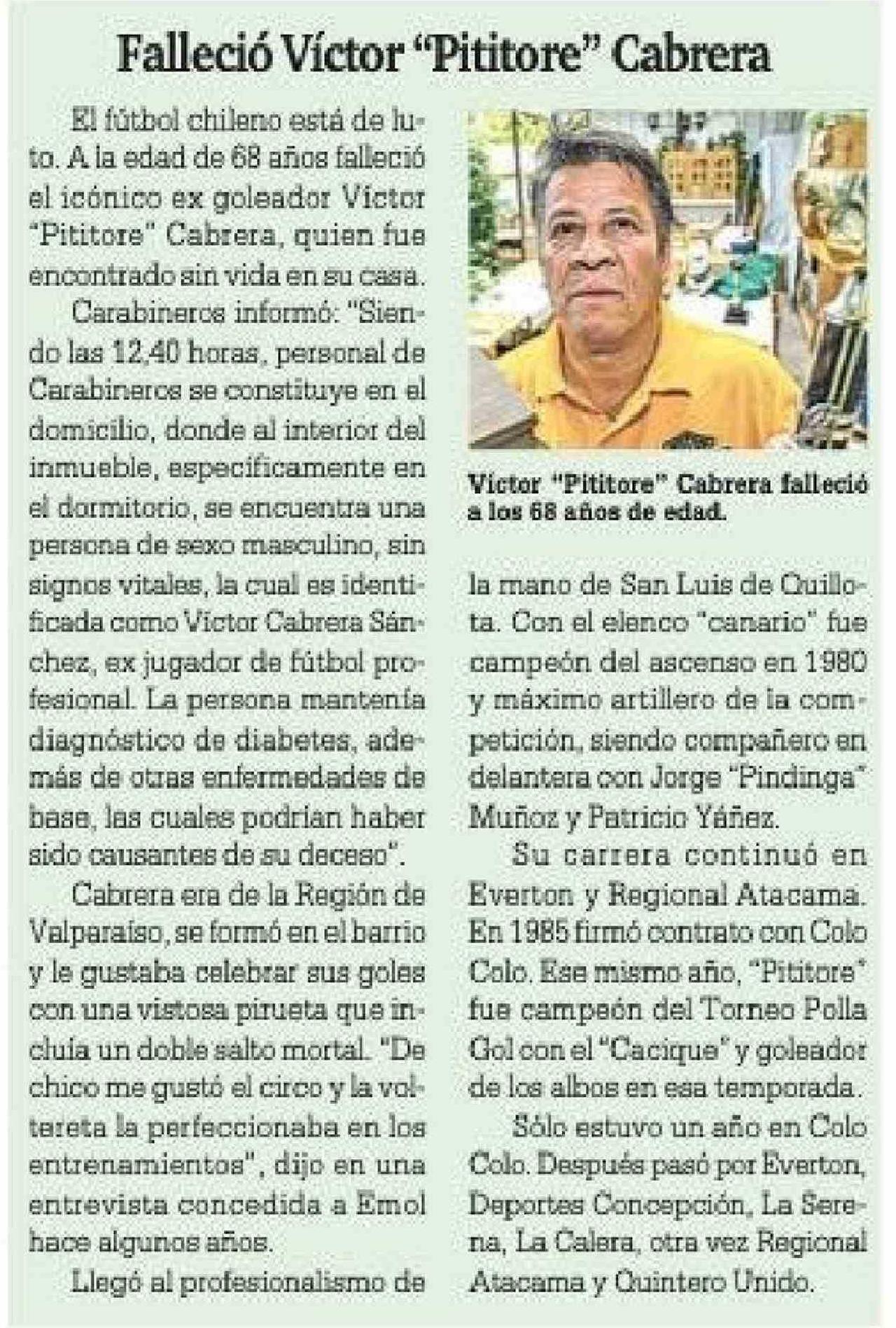 Título: Falleció Víctor "Pititore" Cabrera