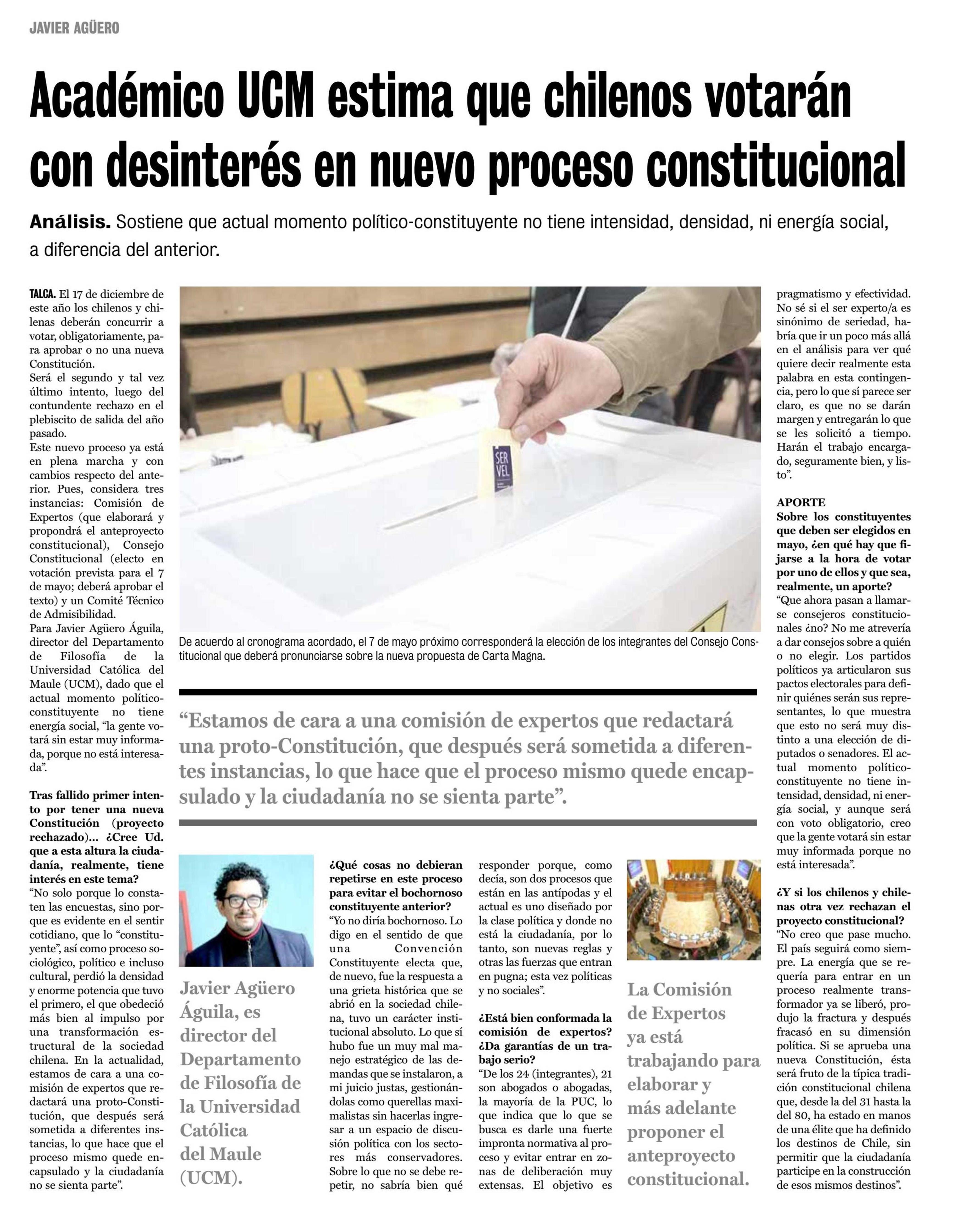 Académico UGM estima que chilenos votarán con desinterés en nuevo proceso constitucional
