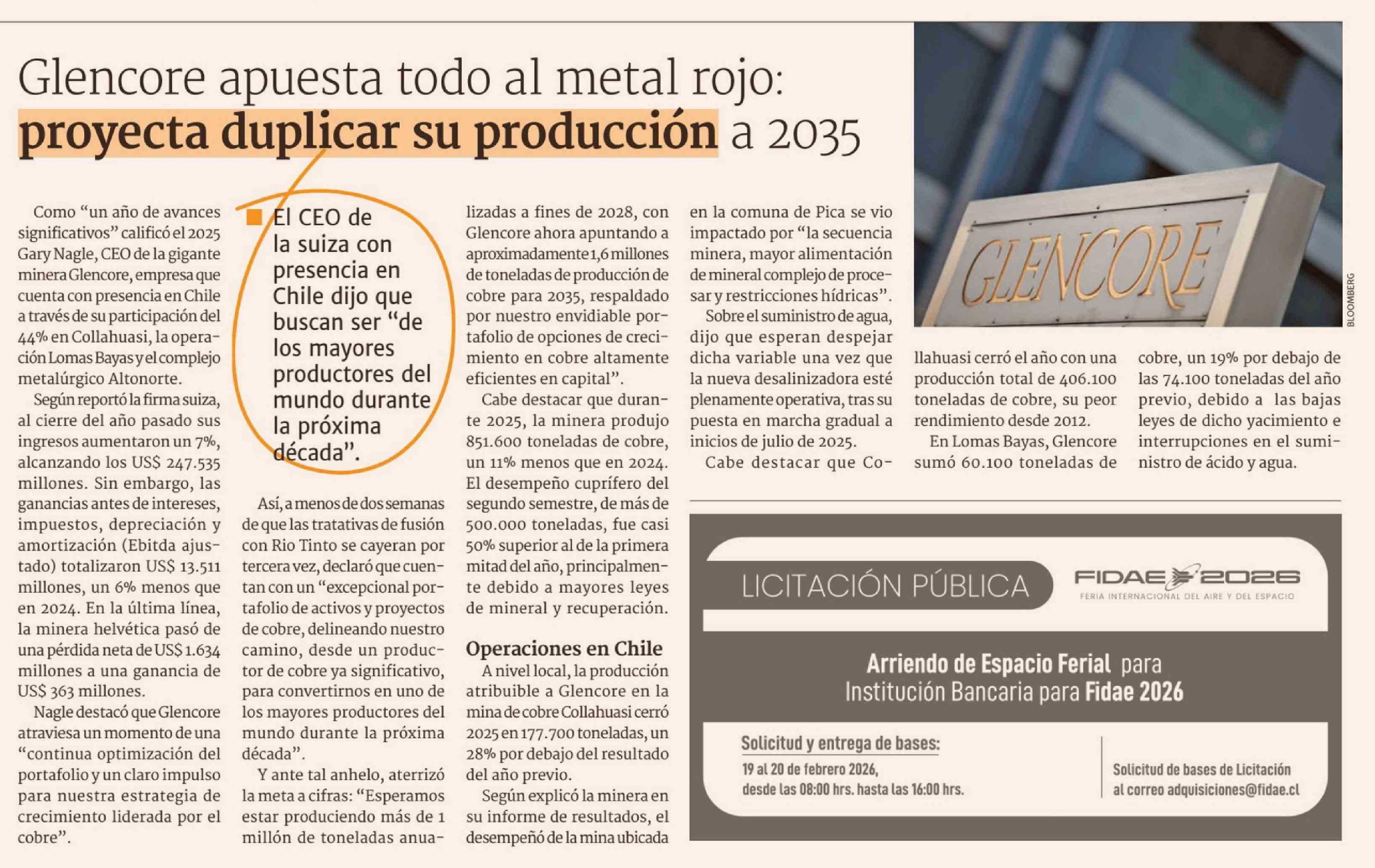 Título: Glencore apuesta todo al metal rojo: proyecta duplicar su producción a 2035