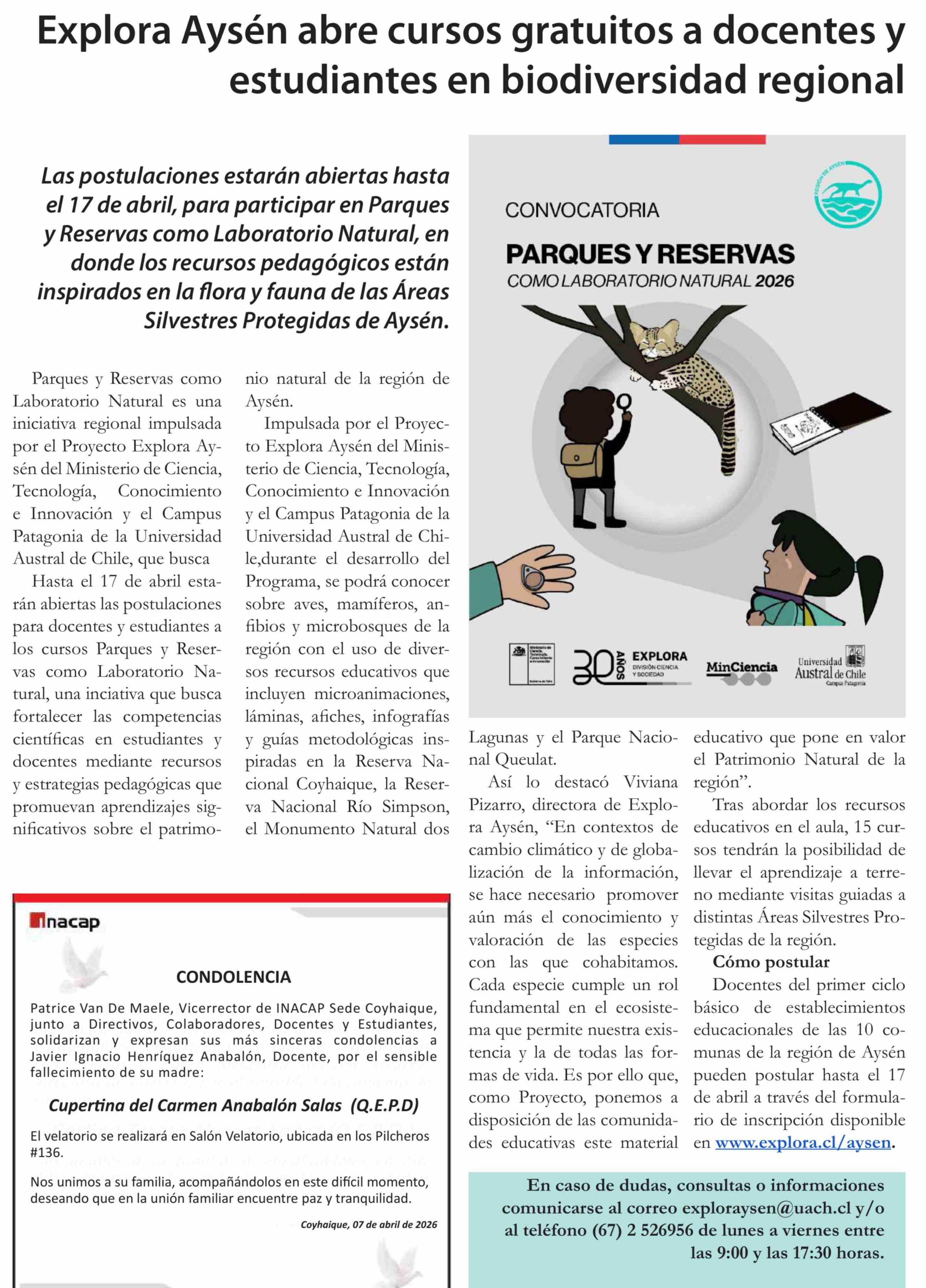 Explora Aysén abre cursos gratuitos a docentes y estudiantes en biodiversidad regional