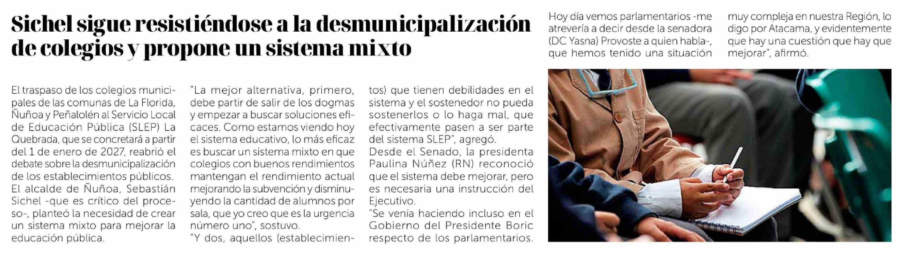 Sichel sigue resistiéndose a la desmunicipalización de colegios y propone un sistema mixto