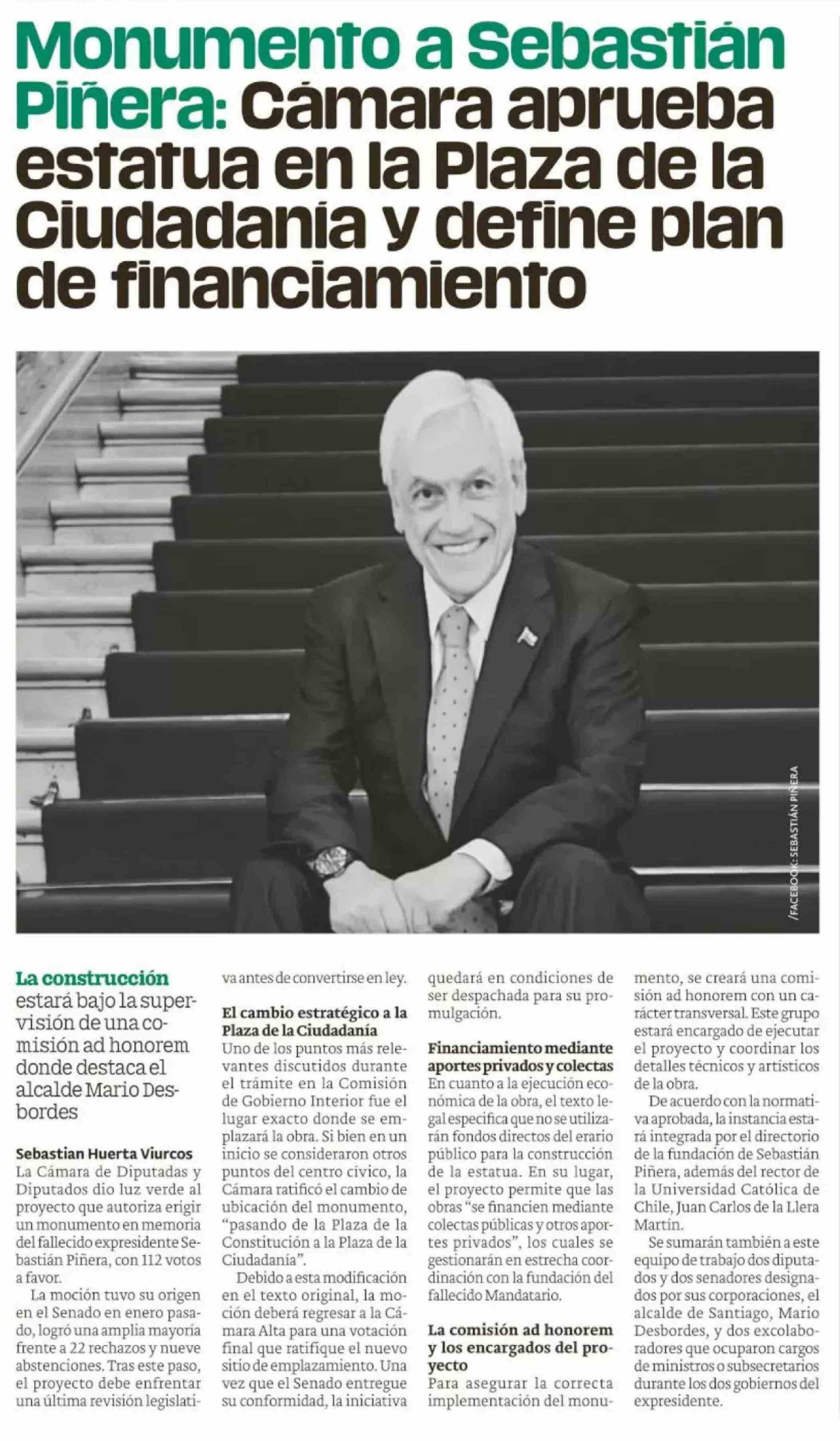 Monumento a Sebastian Piñera: Camara aprueba estatua en la Plaza de la Ciudadania y define plan de financiamiento