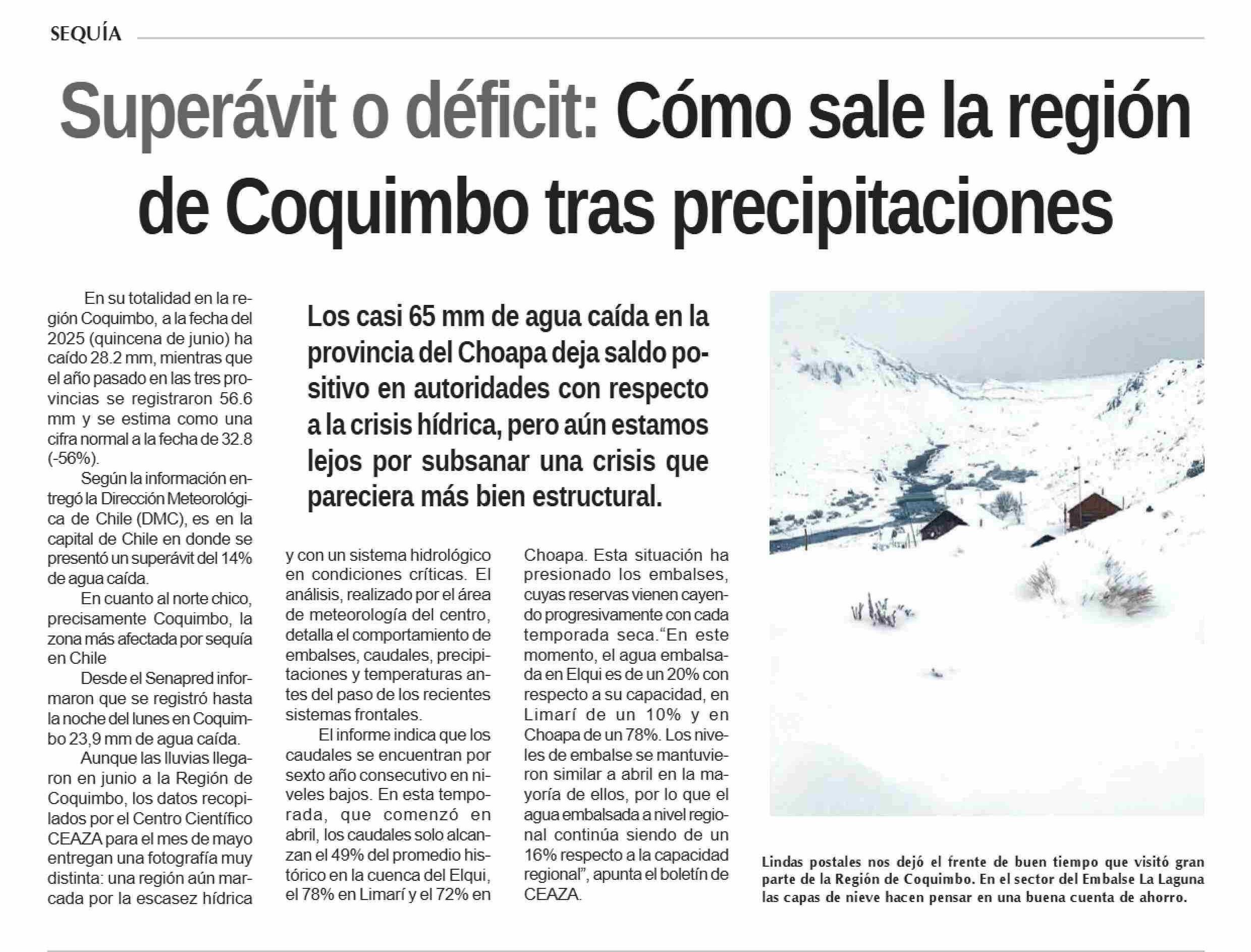 Superávit o déficit: Cómo sale la región de Coquimbo tras precipitaciones