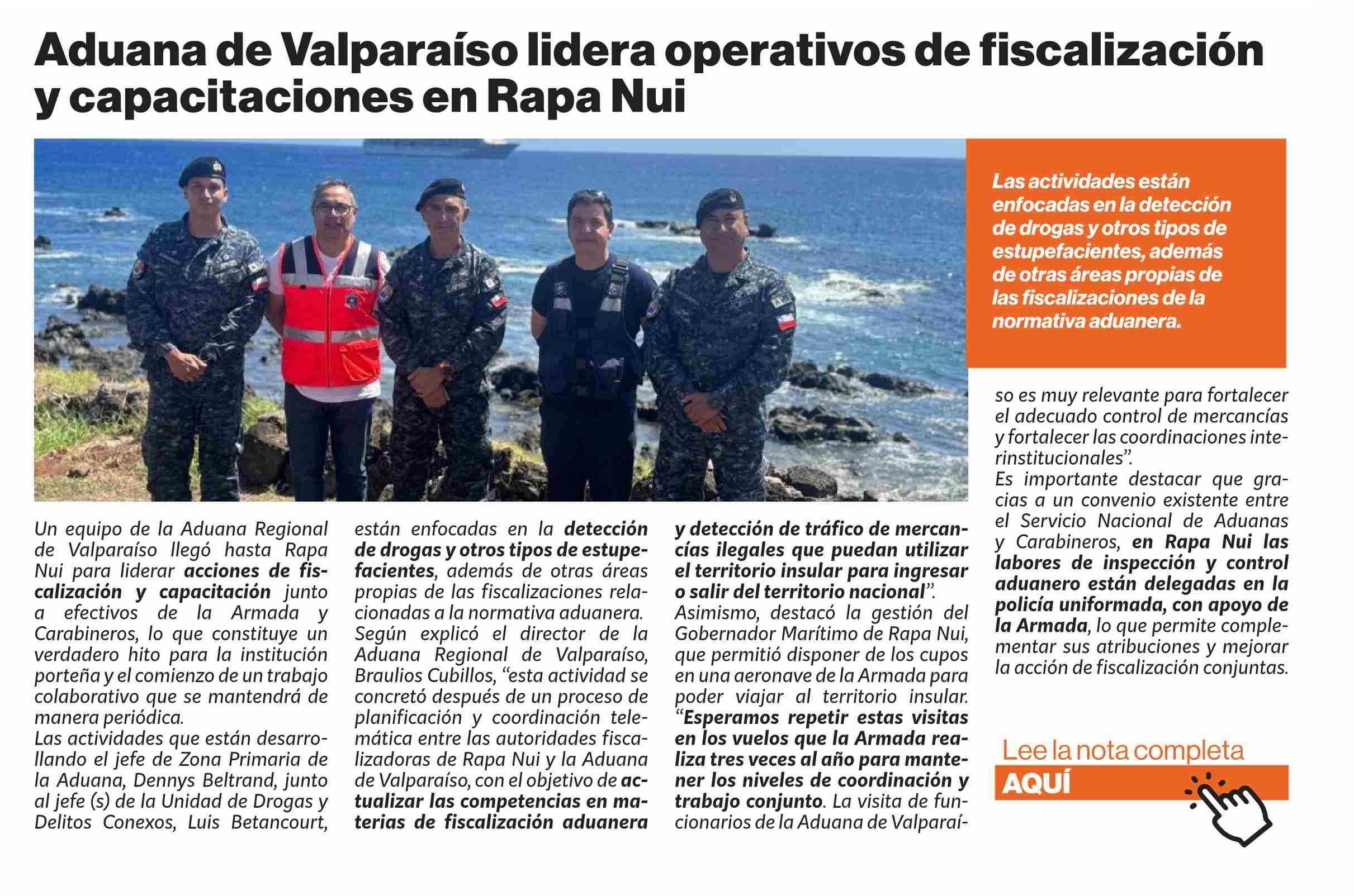 Aduana de Valparaíso lidera operativos de fiscalización y capacitaciones en Rapa Nui