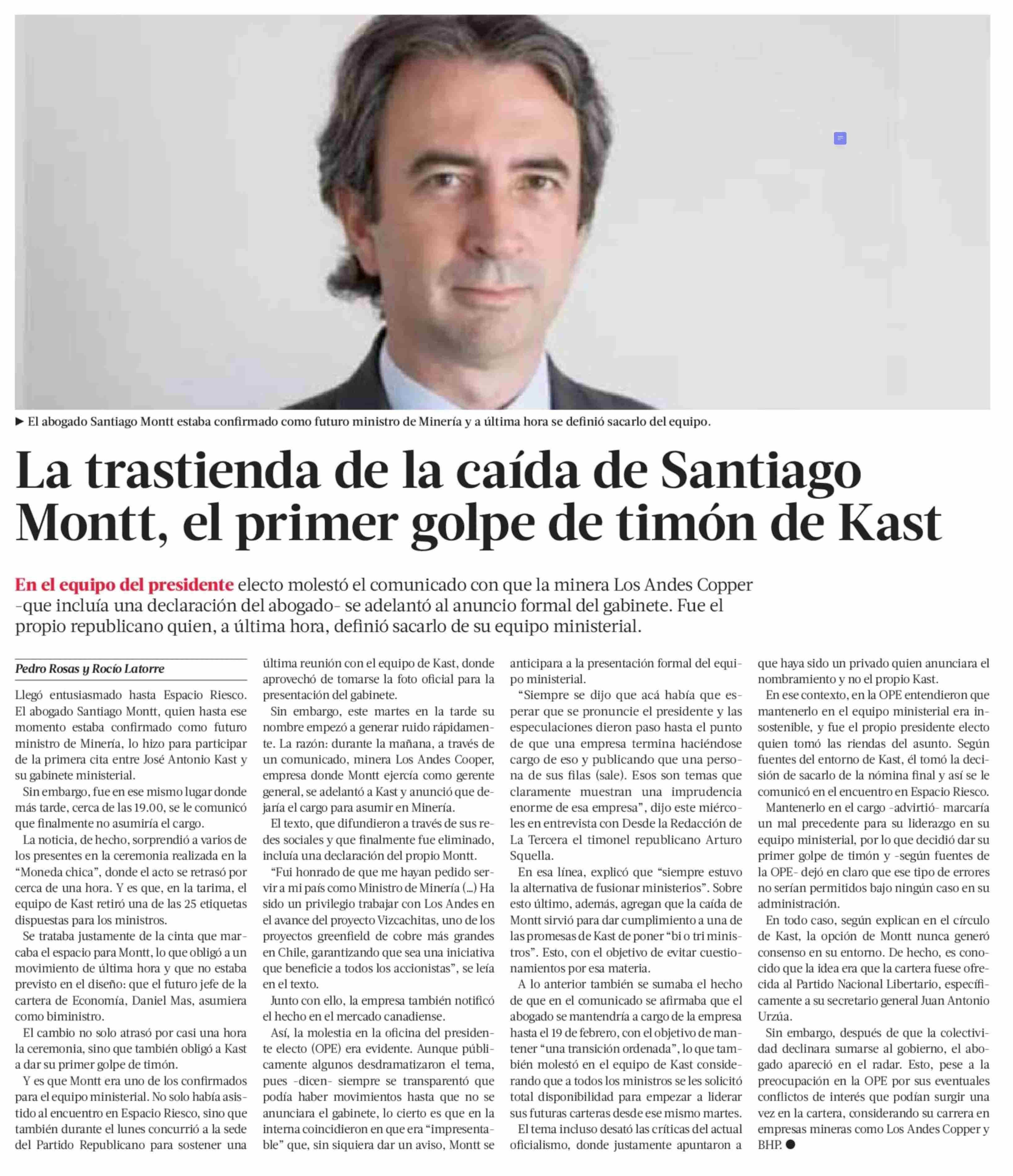 La trastienda de la caída de Santiago Montt, el primer golpe de timón de Kast