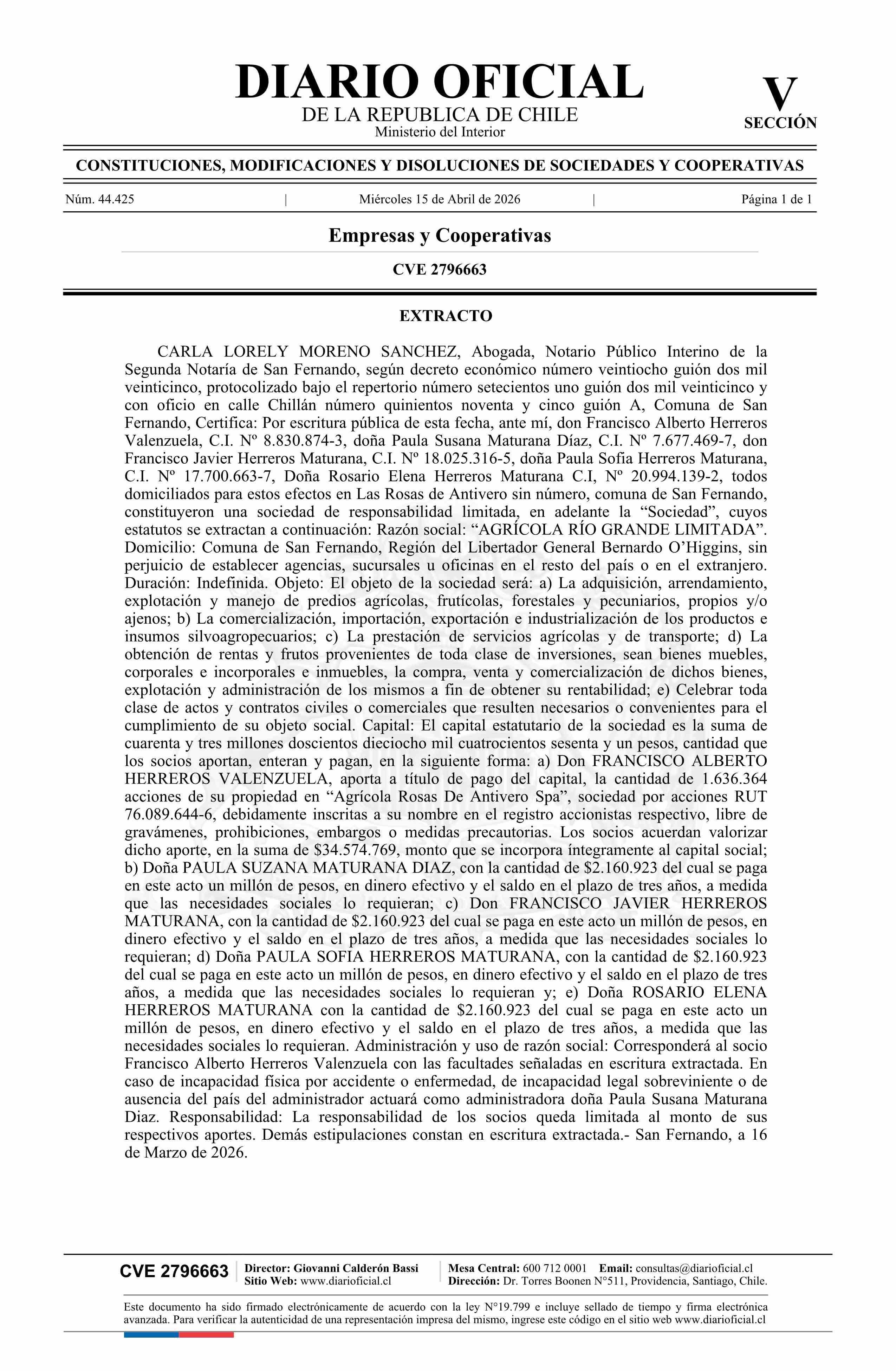 AGRÍCOLA RÍO GRANDE LIMITADA