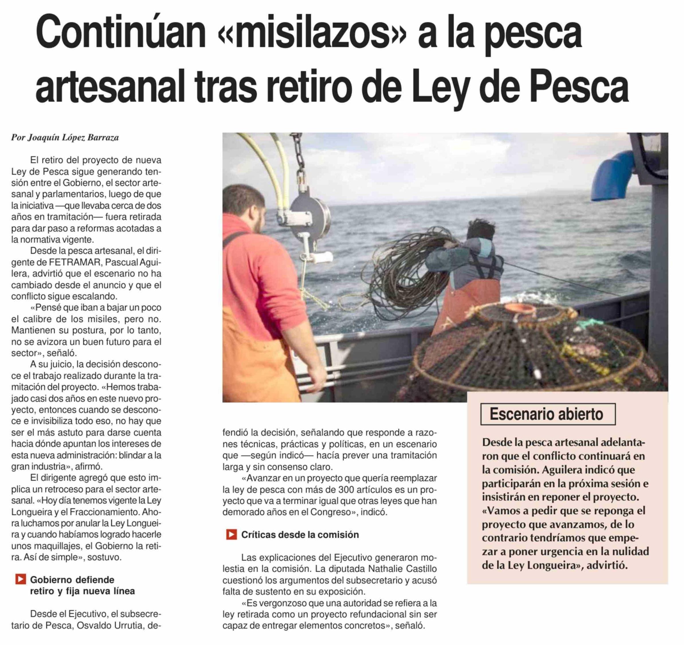 Continúan «misilazos» a la pesca artesanal tras retiro de Ley de Pesca