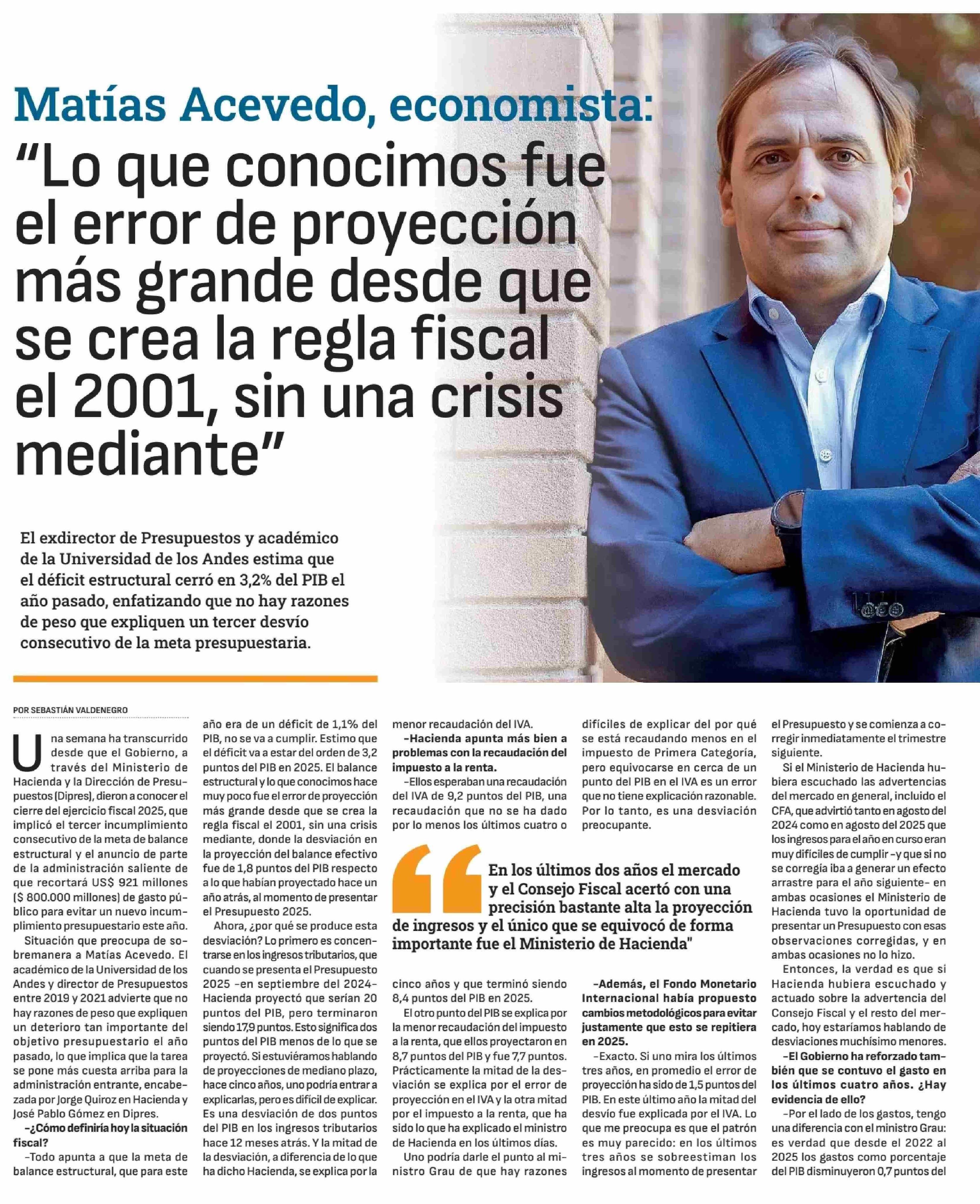 | Título: | "Lo que conocimos fue el error de proyección más grande desde que se crea la regla fiscal el 2001, sin una crisis mediante" |
