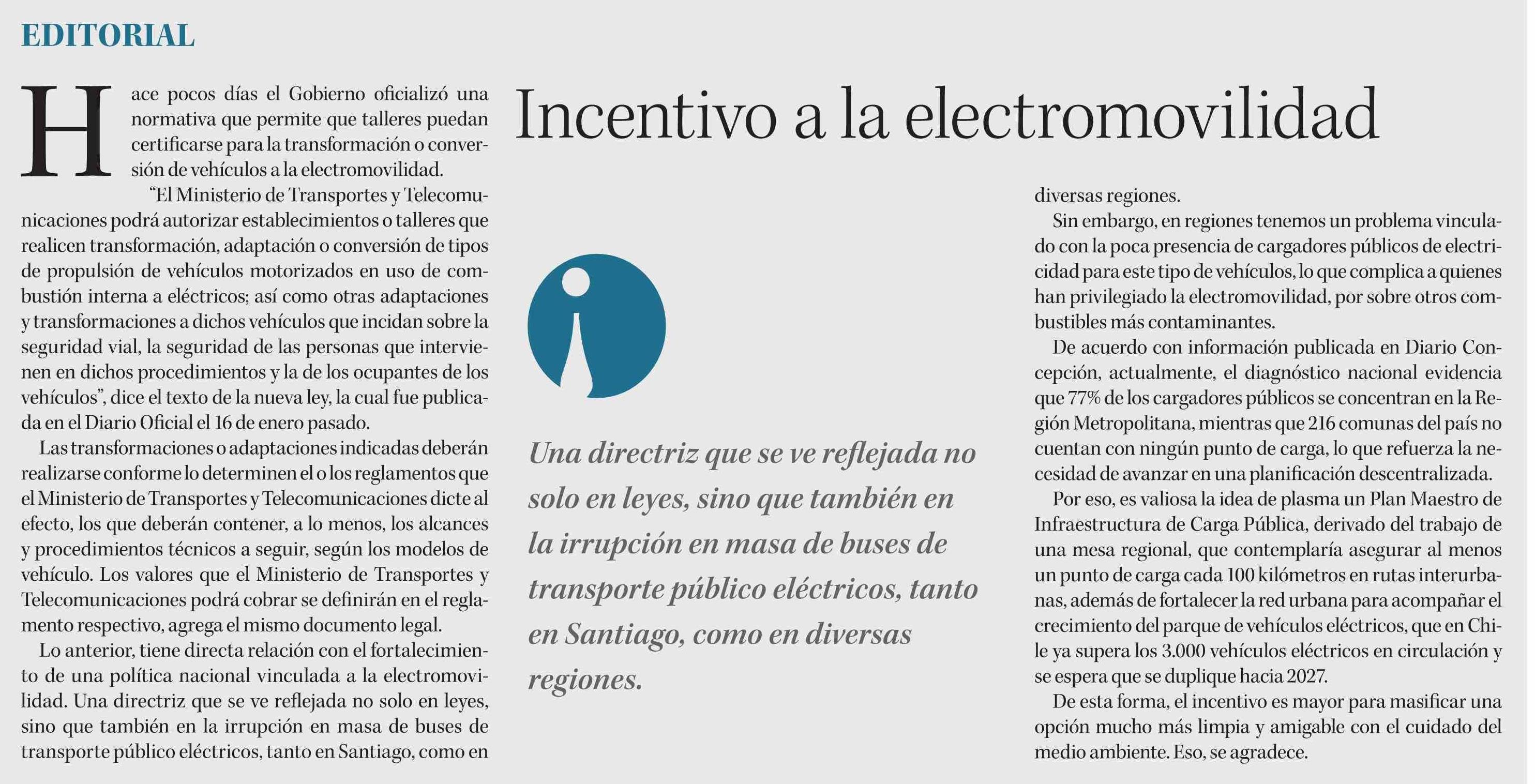 Editorial: Incentivo a la electromovilidad
