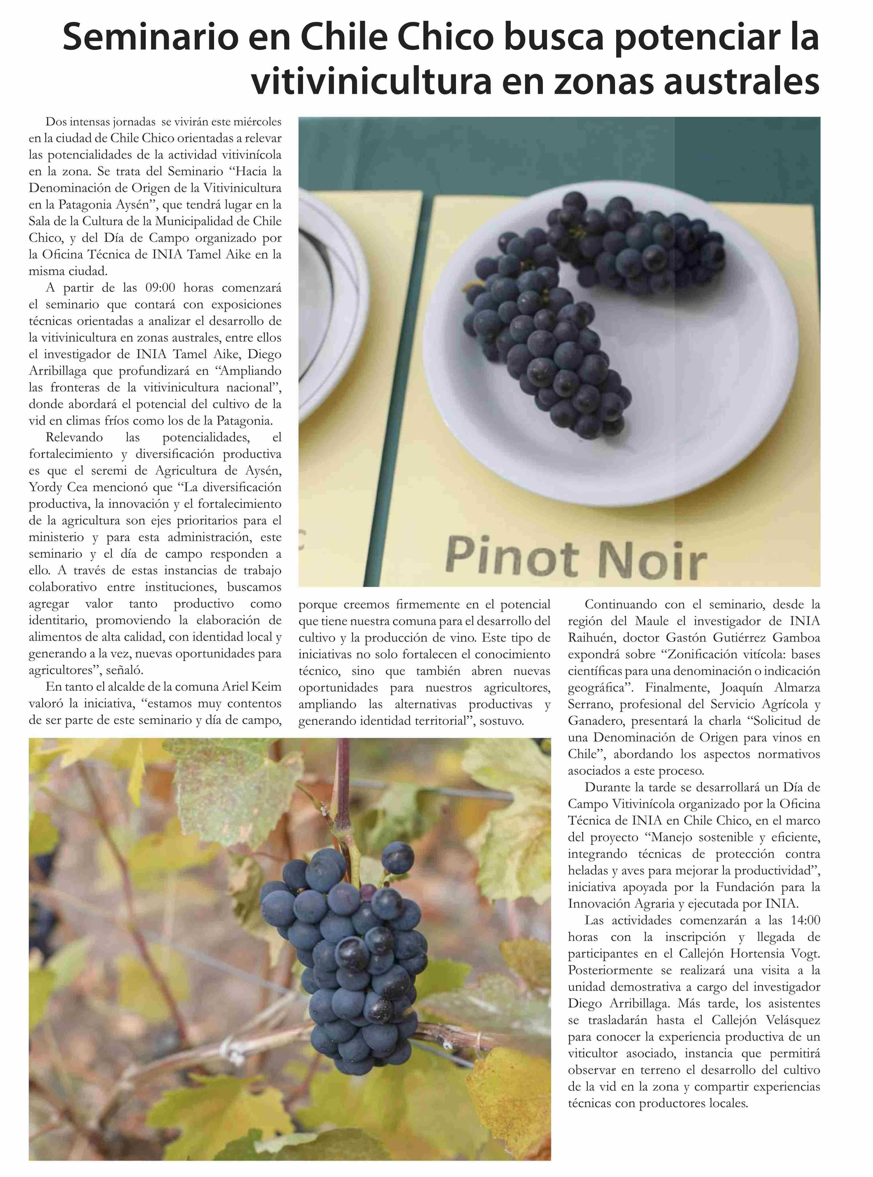Título: Seminario en Chile Chico busca potenciar la vitivinicultura en zonas australes