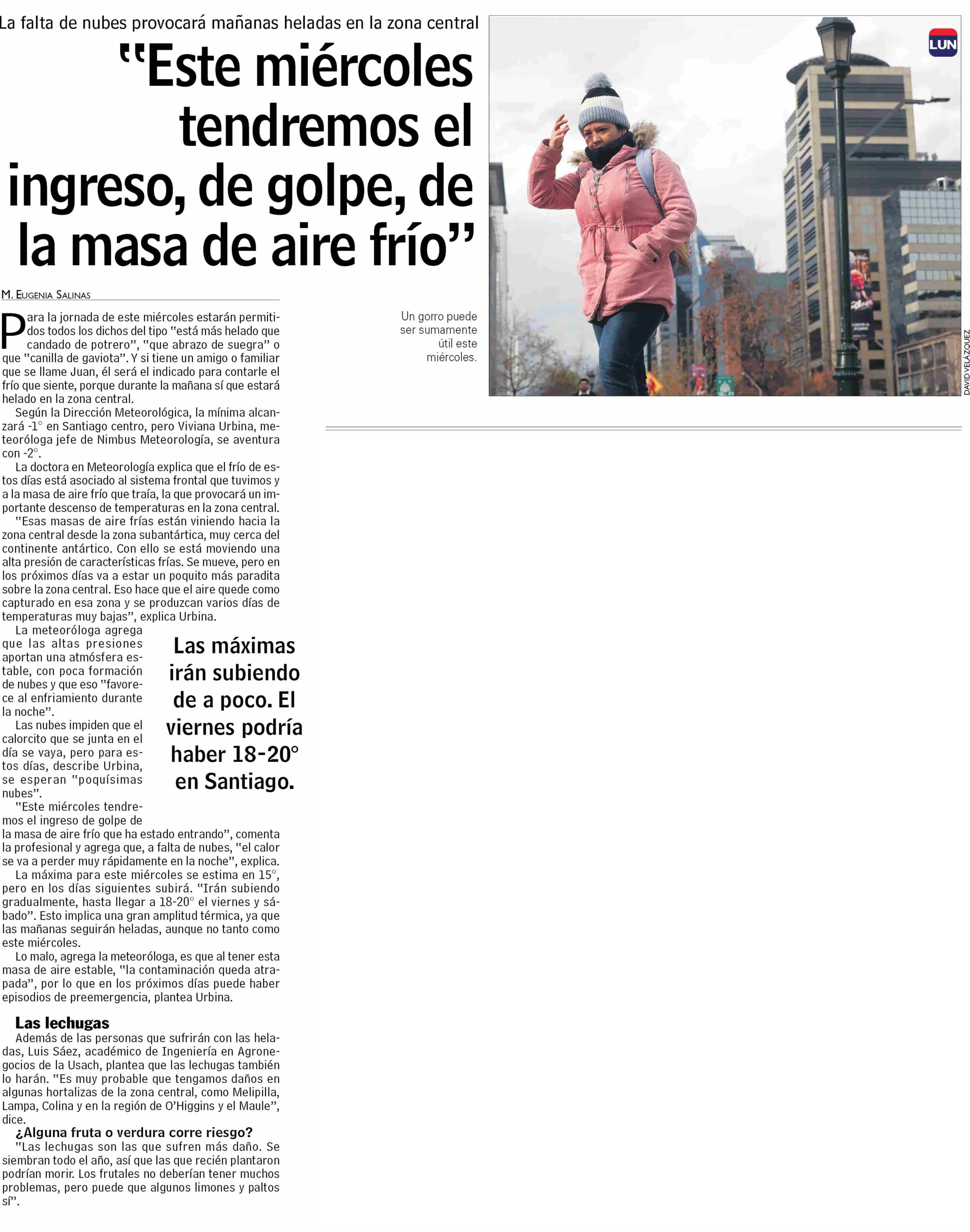 “Este miércoles tendremos el ingreso, de golpe, de la masa de aire frio””