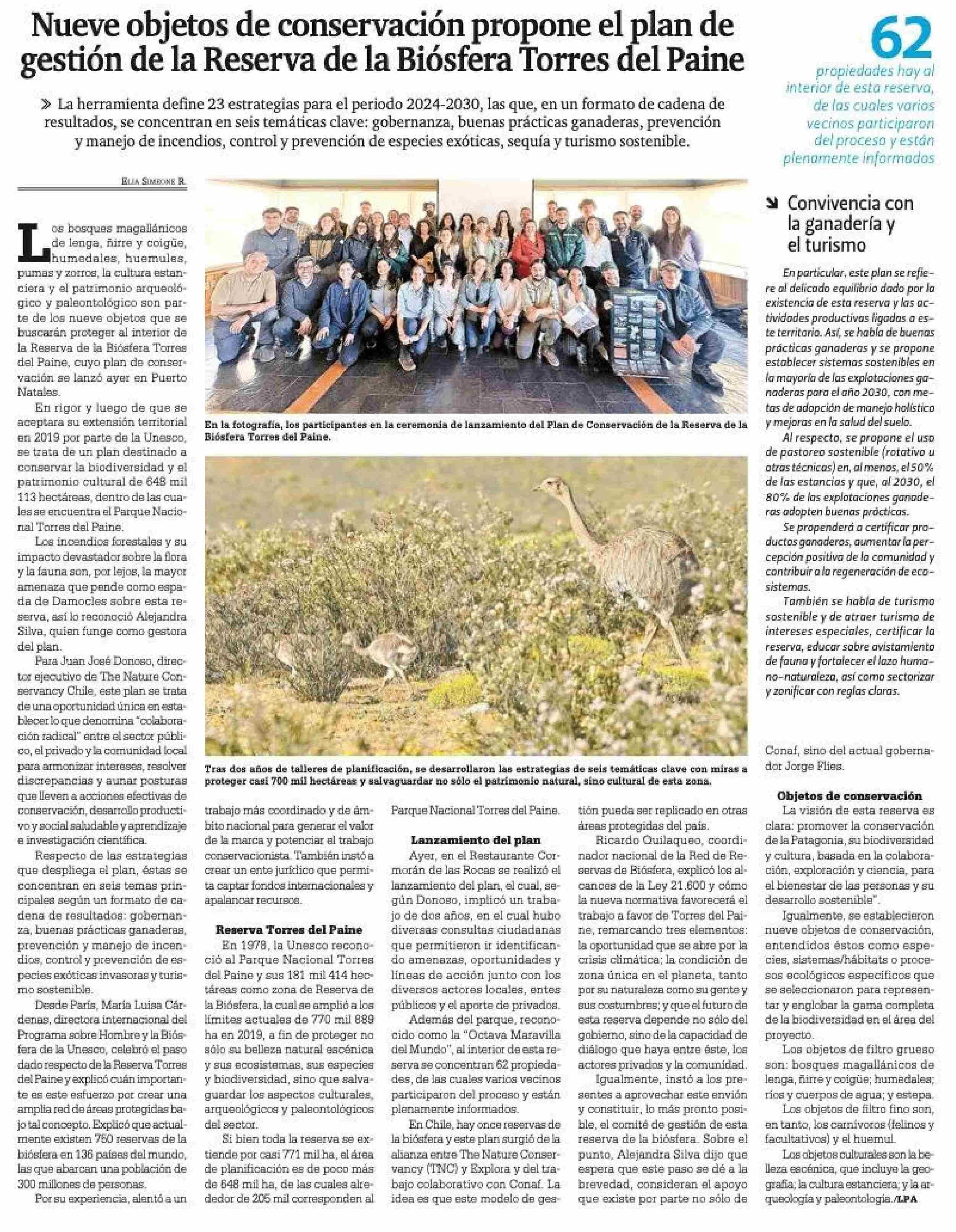 Nueve objetos de conservación propone el plan de gestión de la Reserva de la Biósfera Torres del Paine