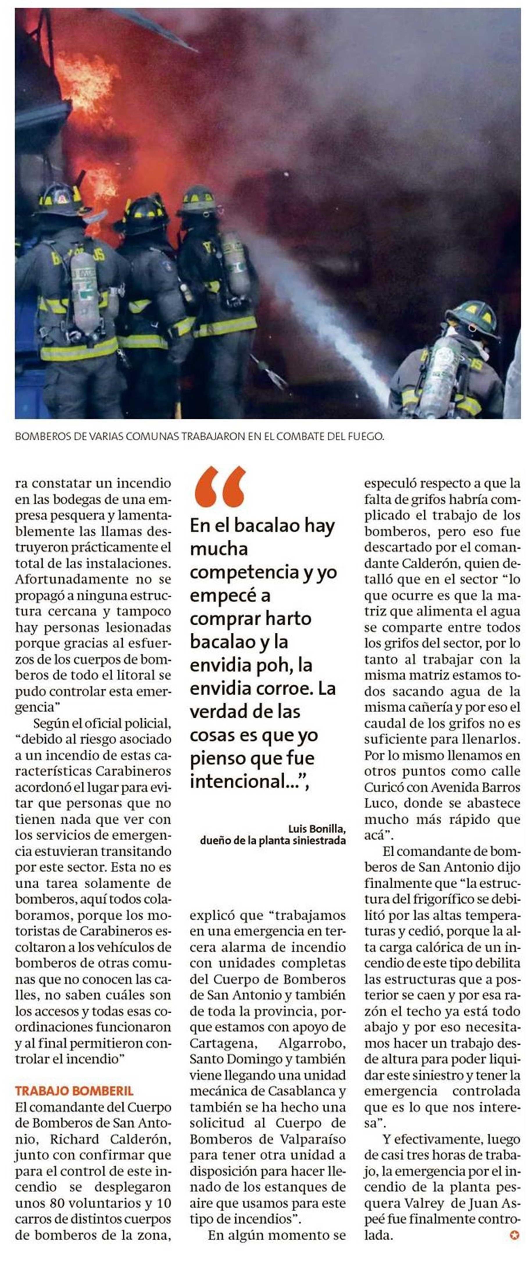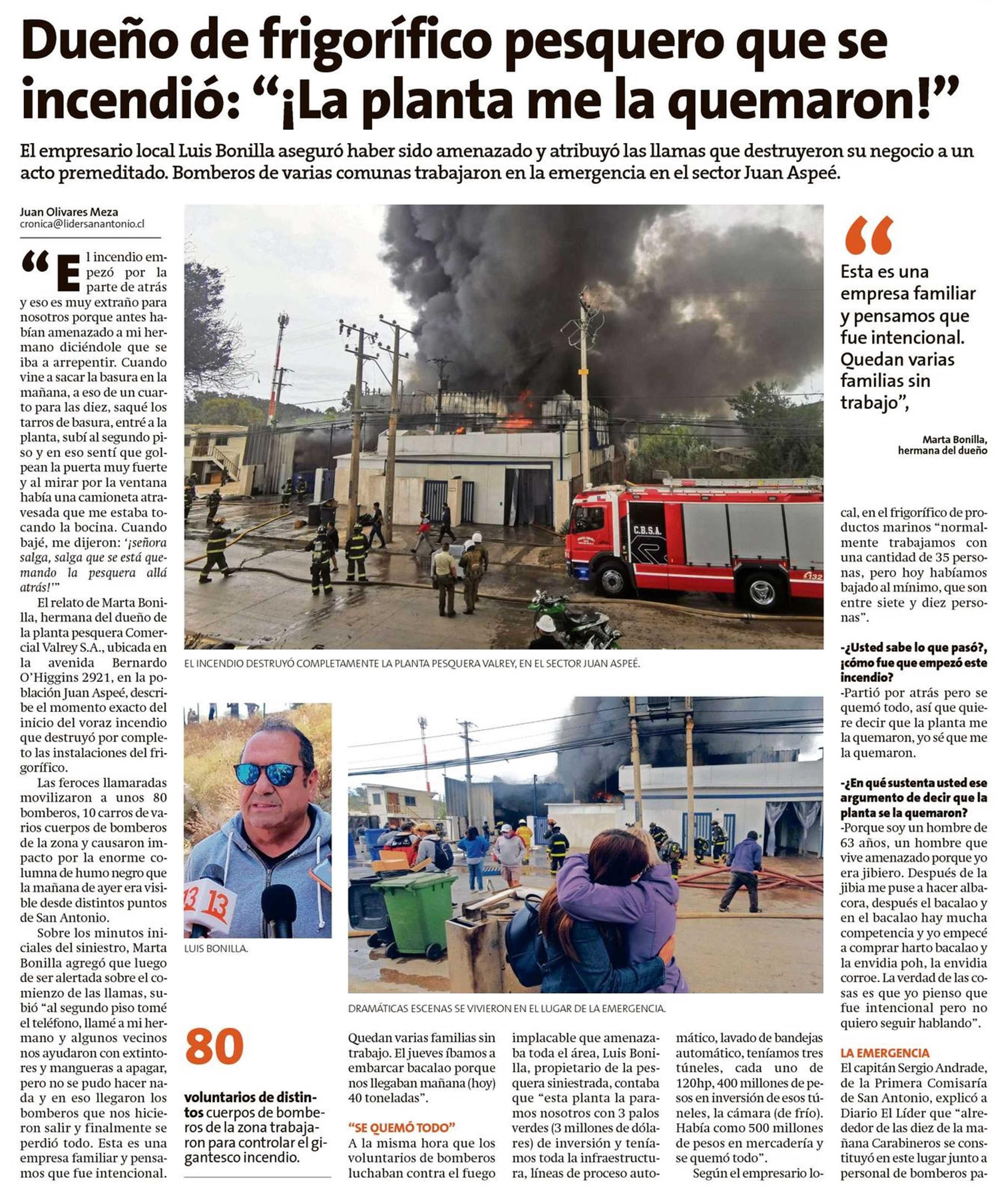 Dueño de frigorífico pesquero que se incendió: “¡ La planta me la quemaron! ”