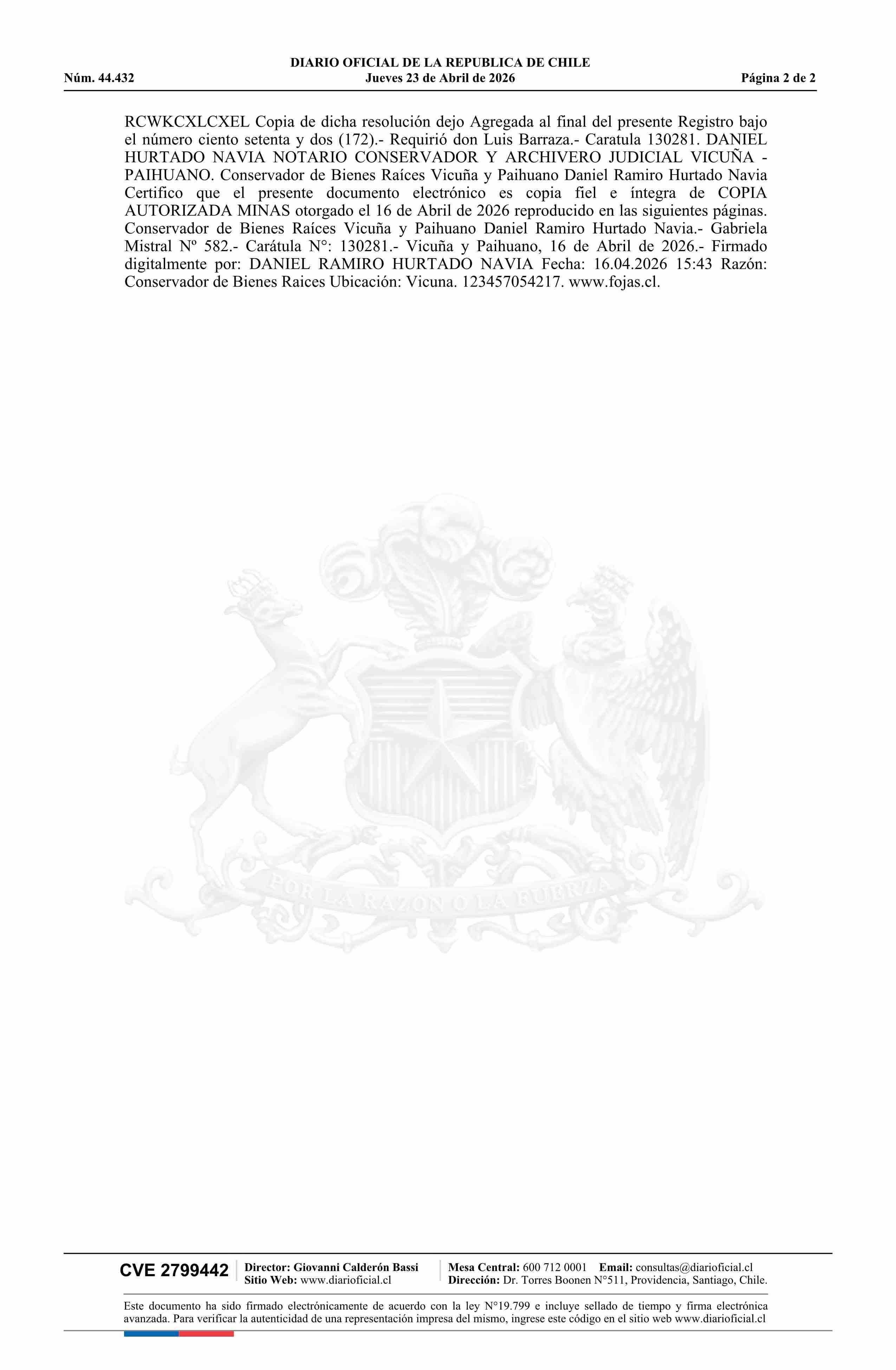 DIARIO OFICIAL CHILE - BOLETÍN OFICIAL DE MINERÍA (DIARIO OFICIAL CHILE – BOM – PEDIMENTOS MINEROS)