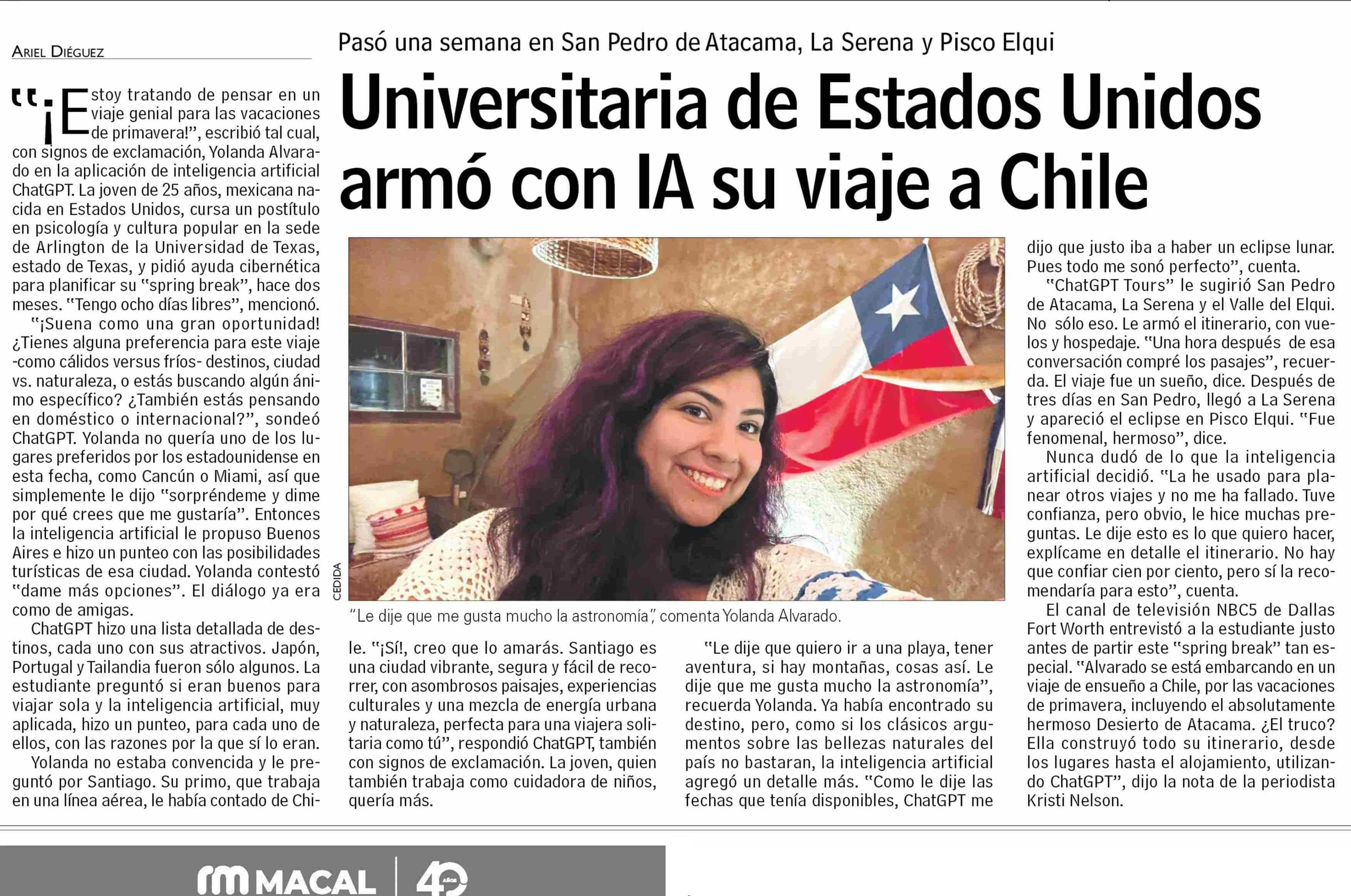 Universitaria de Estados Unidos armó con lA su viaje a Chile