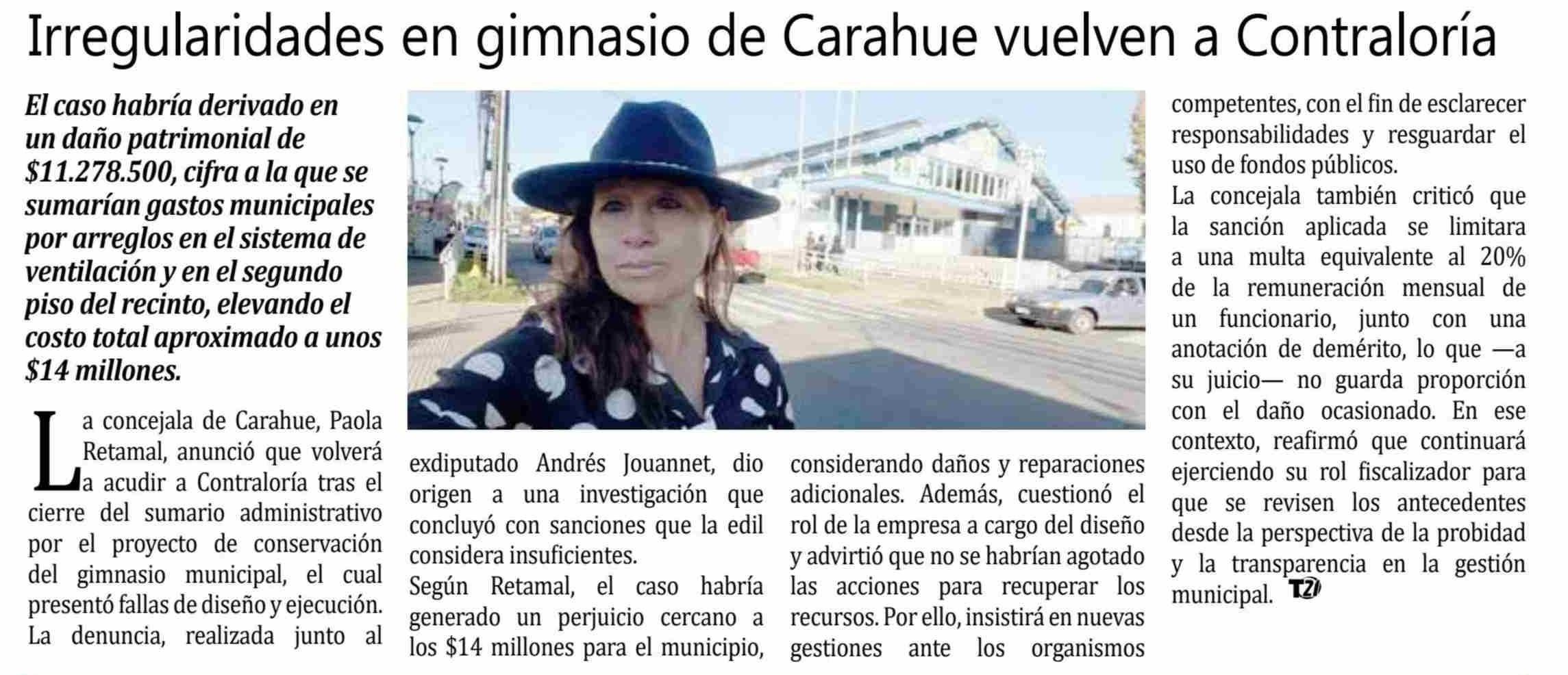 Irregularidades en gimnasio de Carahue vuelven a Contraloría