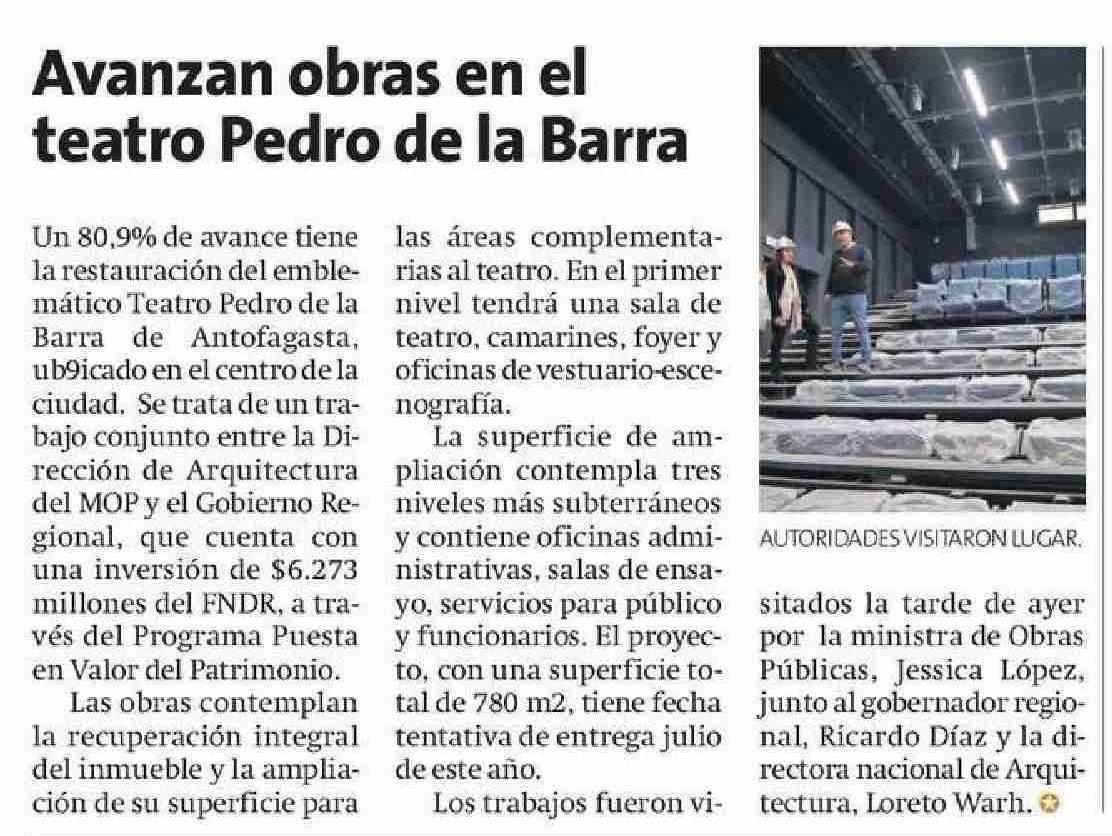 Avanzan obras en el teatro Pedro de la Barra