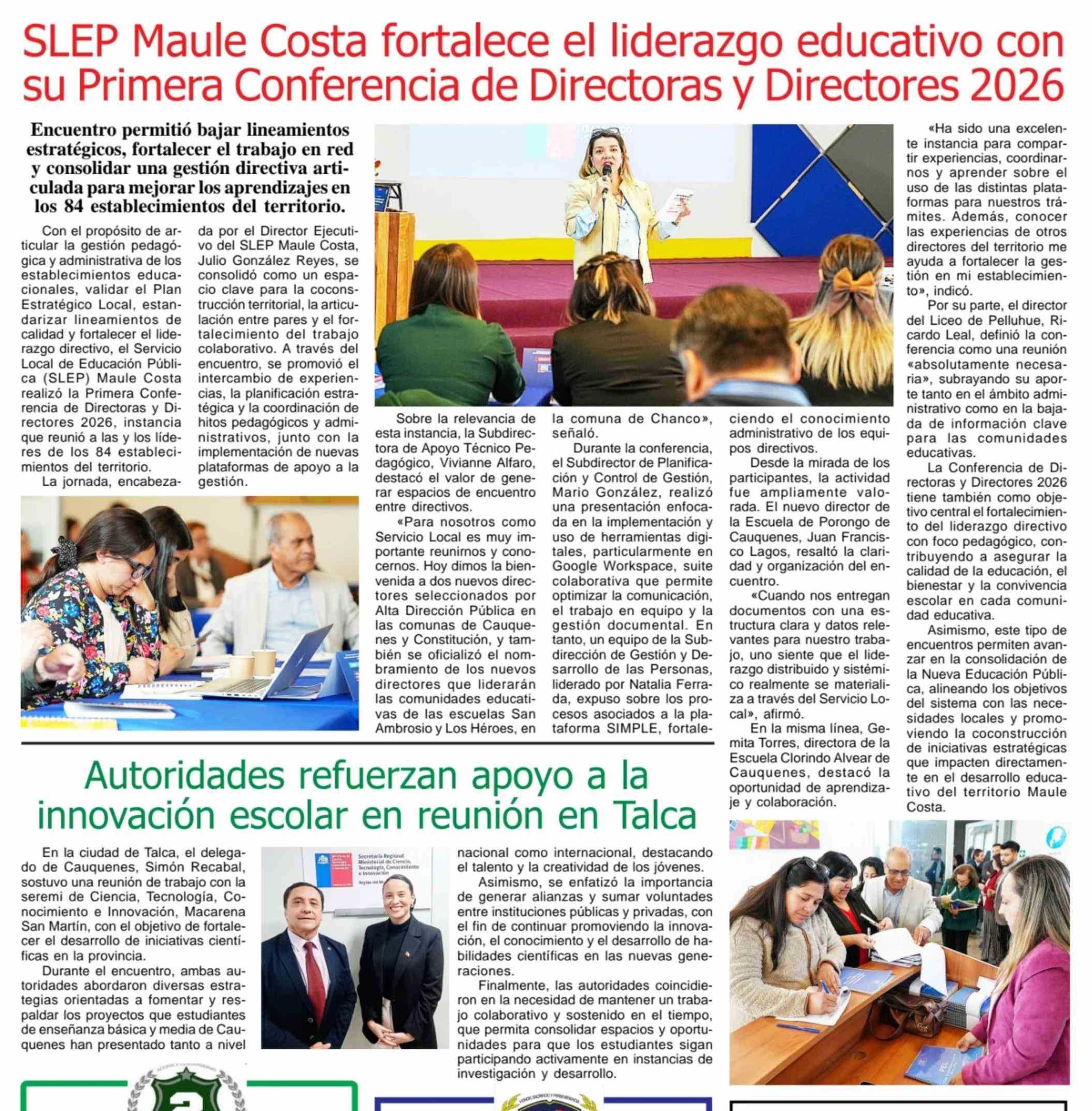SLEP Maule Costa fortalece el liderazgo educativo con su Primera Conferencia de Directoras y Directores 2026