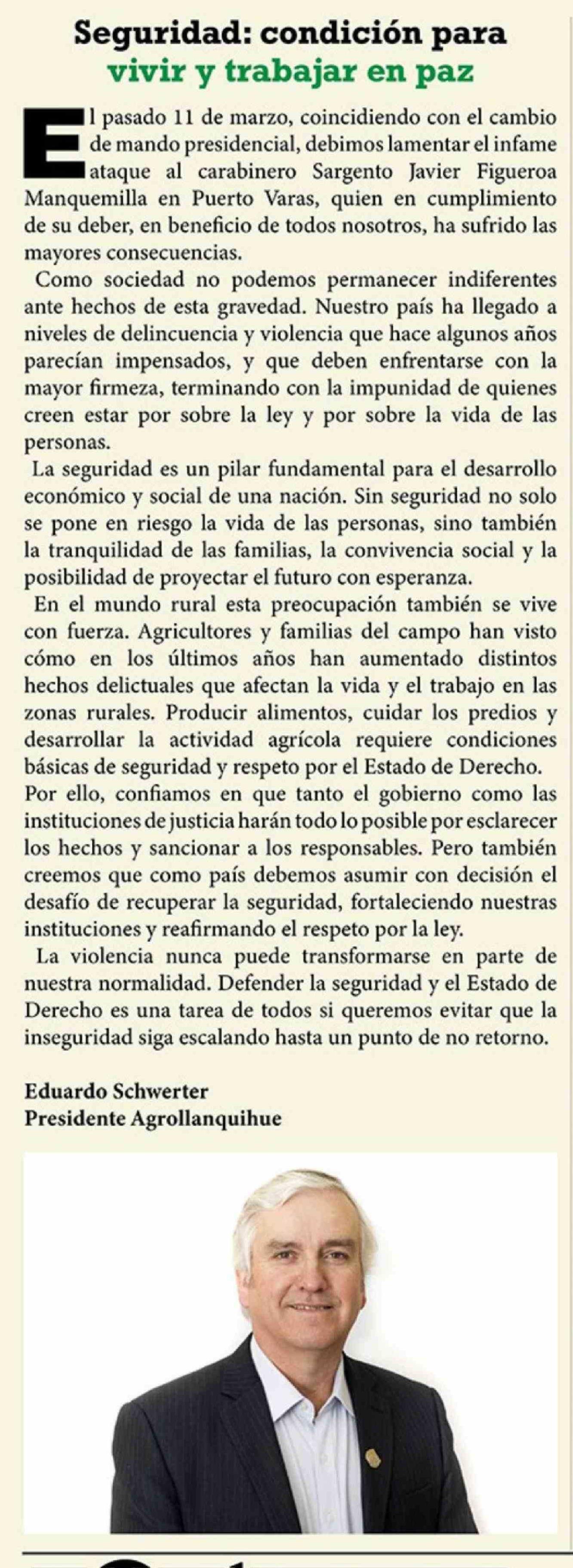 Columnas de Opinión: Seguridad: condición para vivir y trabajar en paz