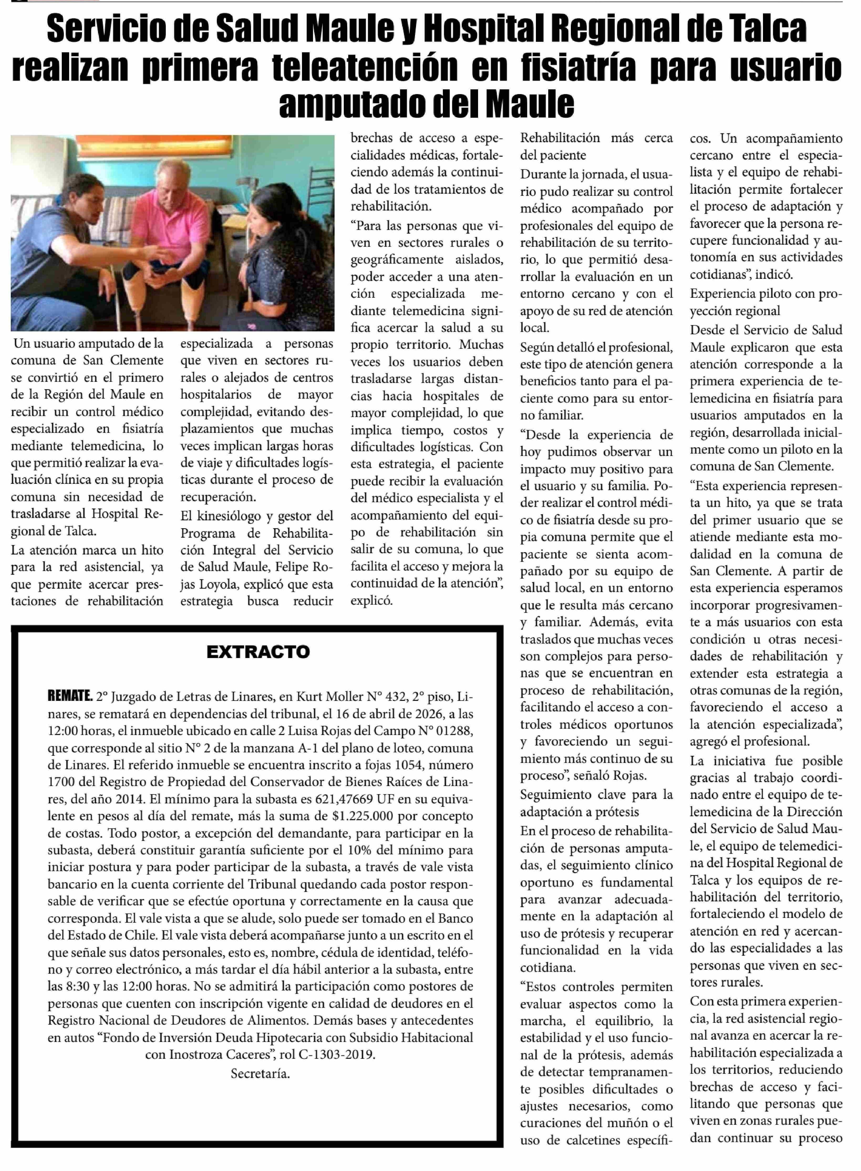 Servicio de Salud Maule y Hospital Regional de Talca realizan primera teleatención en fisiatria para usuario amputado del Maule