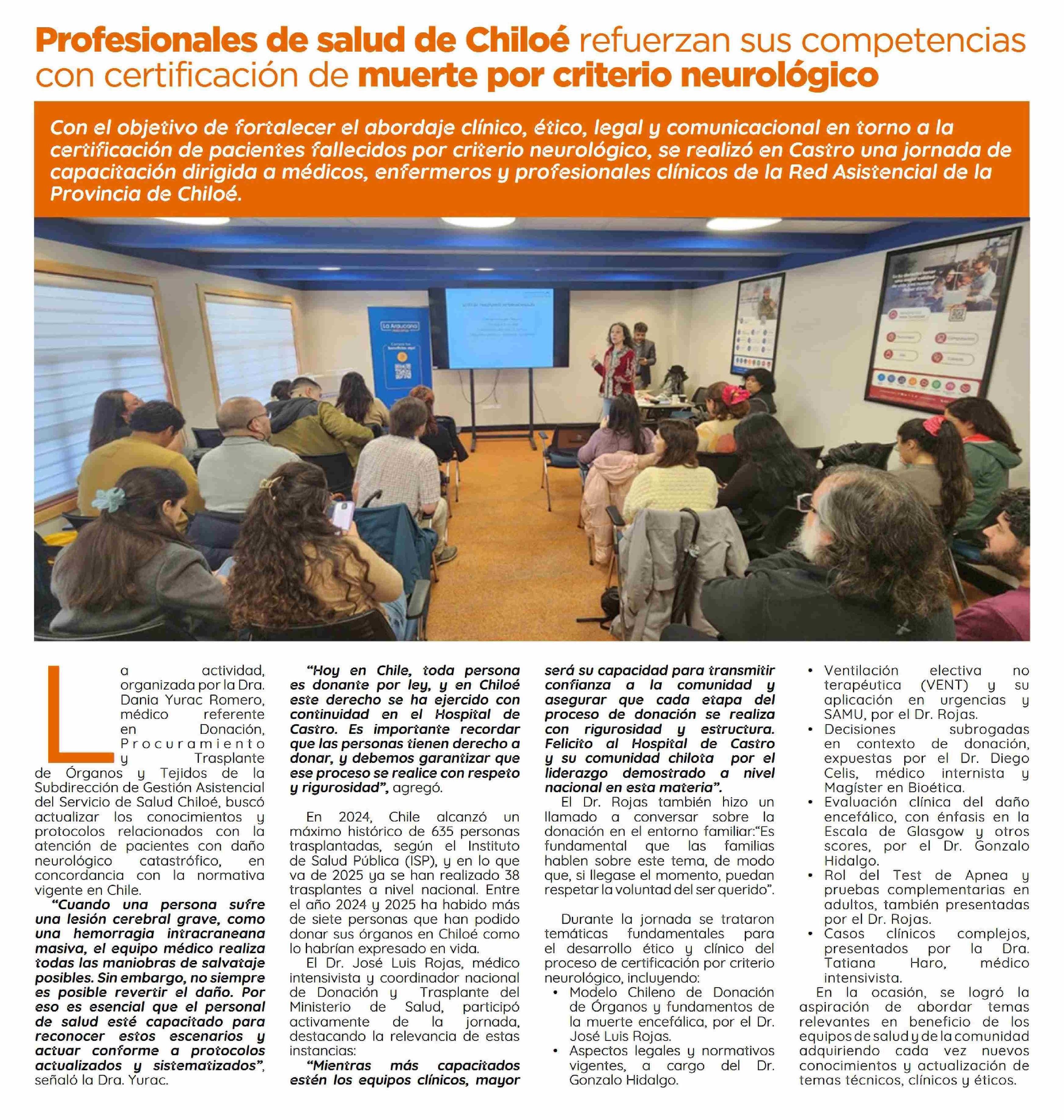 Profesionales de salud de Chiloé refuerzan sus competencias con certificación de muerte por criterio neurológico