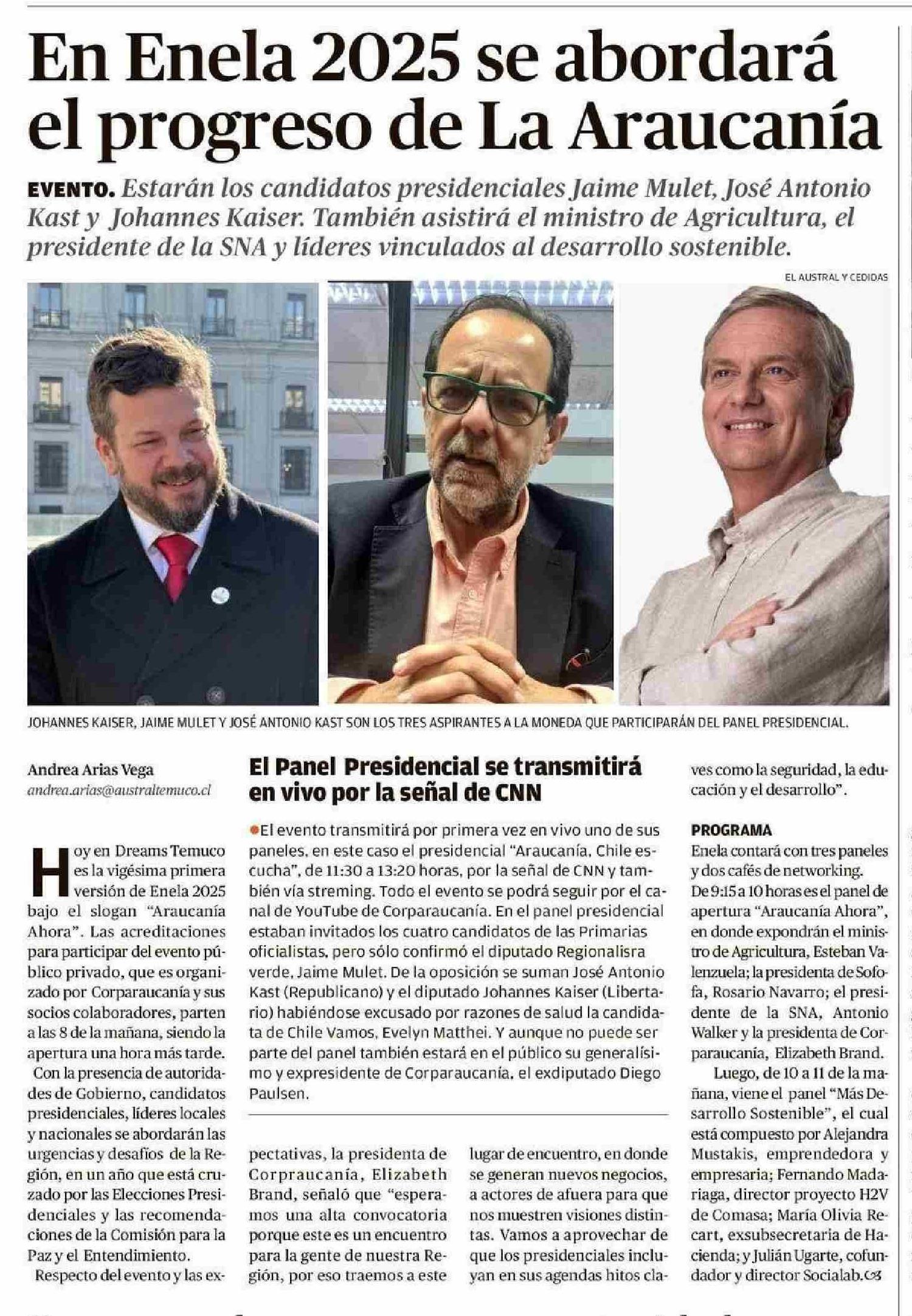 En Enela 2025 se abordará el progreso de La Araucanía