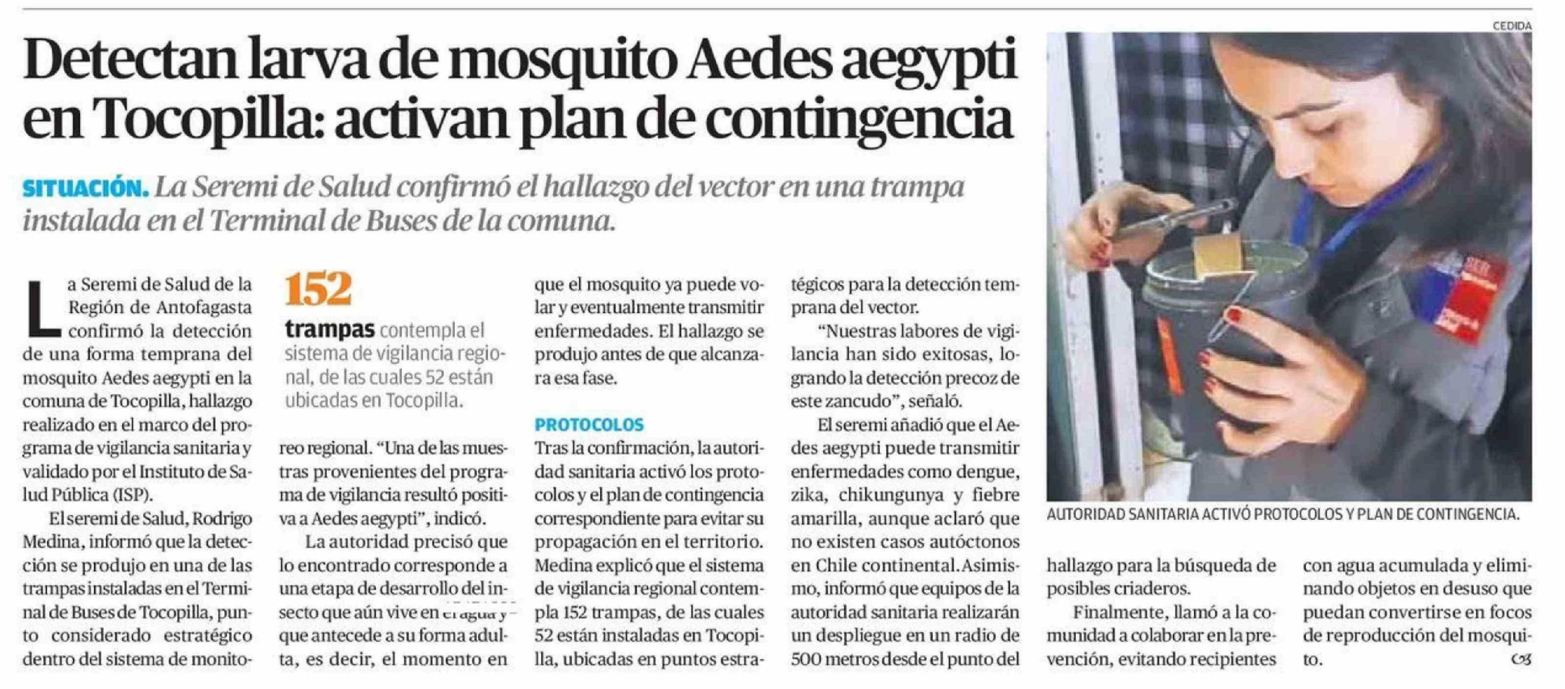 Detectan larva de mosquito Aedes aegypti en Tocopilla: activan plan de contingencia