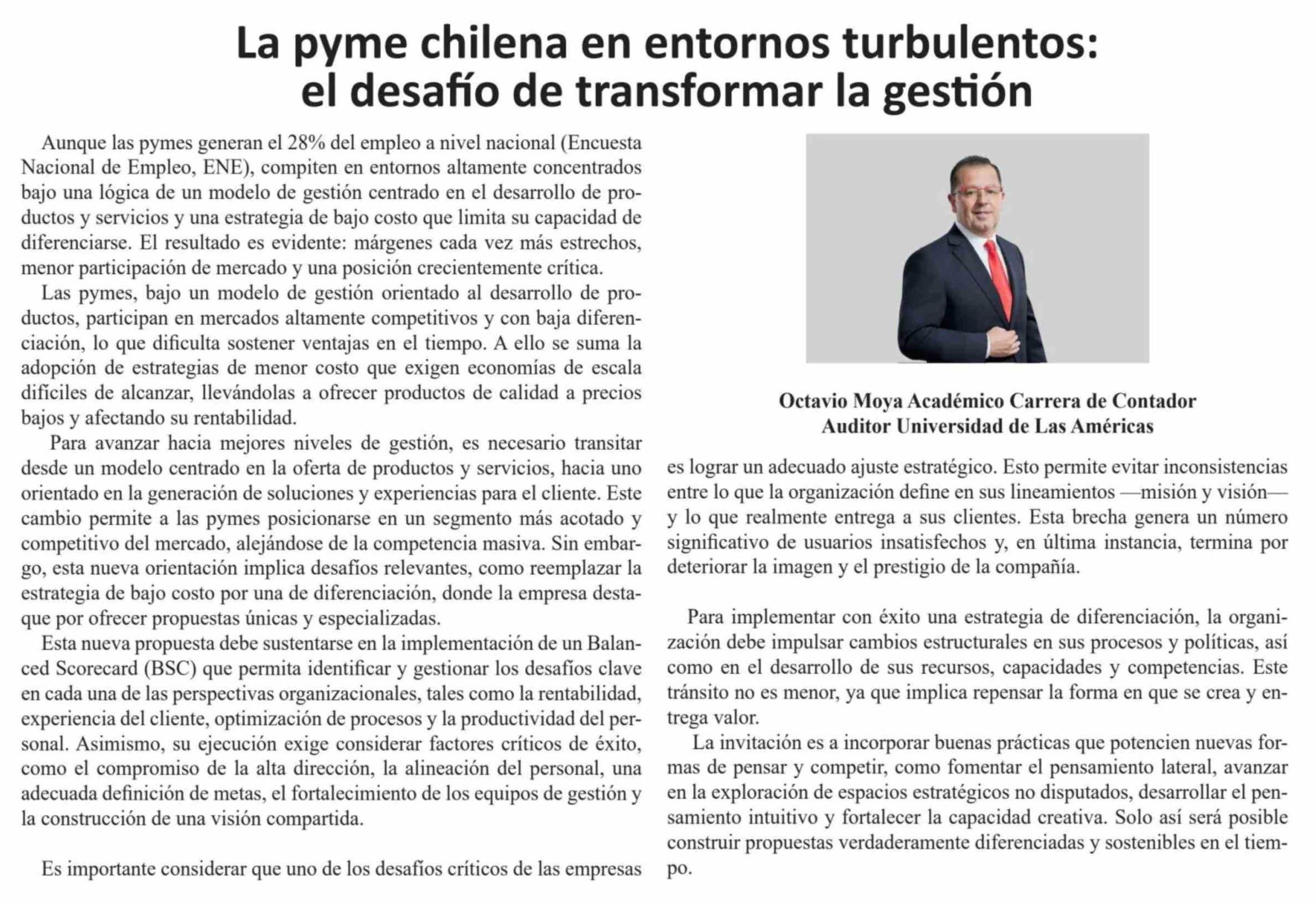 Columnas de Opinión: La pyme chilena en entornos turbulentos: el desafío de transformar la gestión