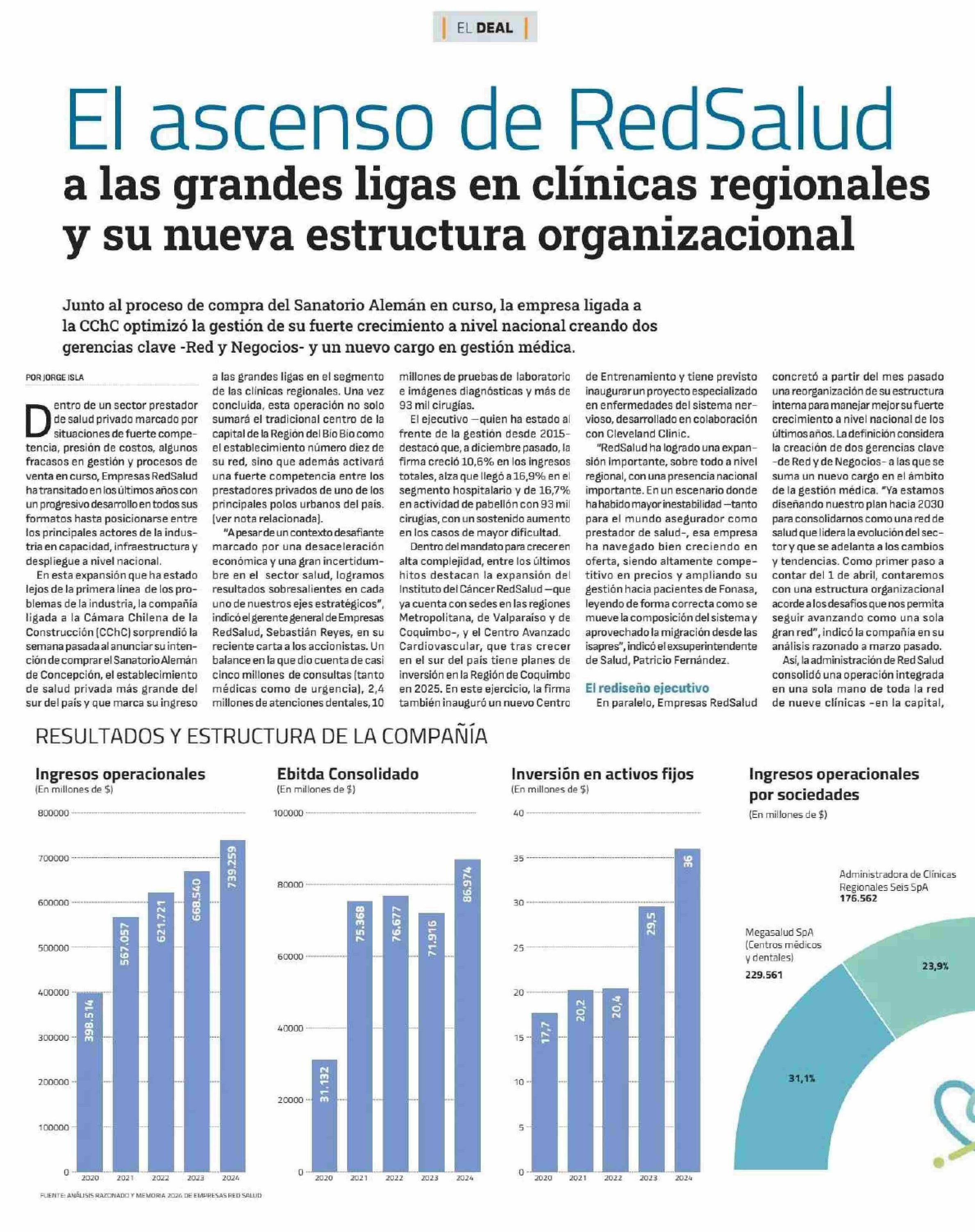 El ascenso de RedSalud a las grandes ligas en clínicas regionales y su nueva estructura organizacional