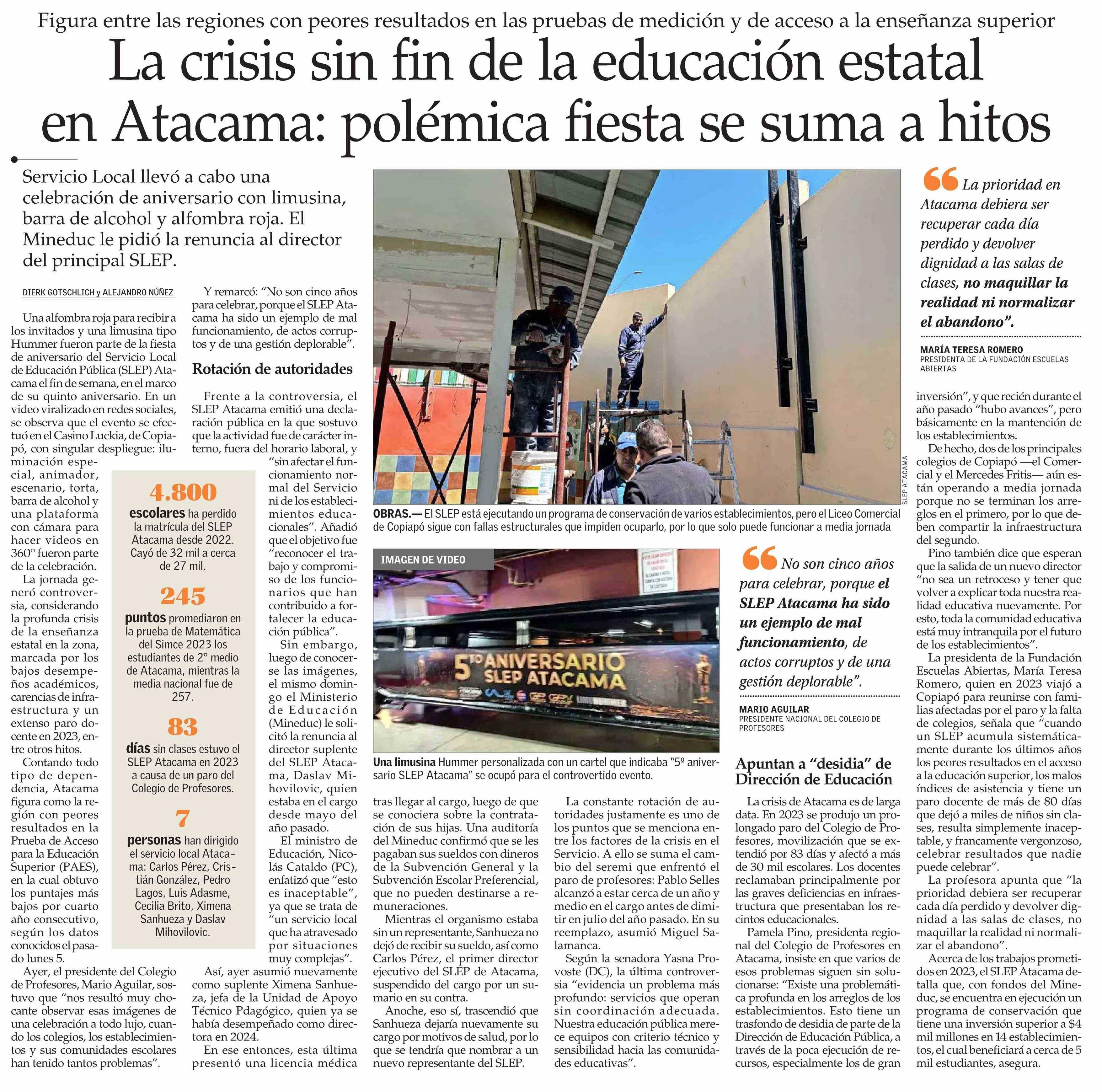 La crisis sin fin de la educación estatal en Atacama: polémica fiesta se suma a hitos