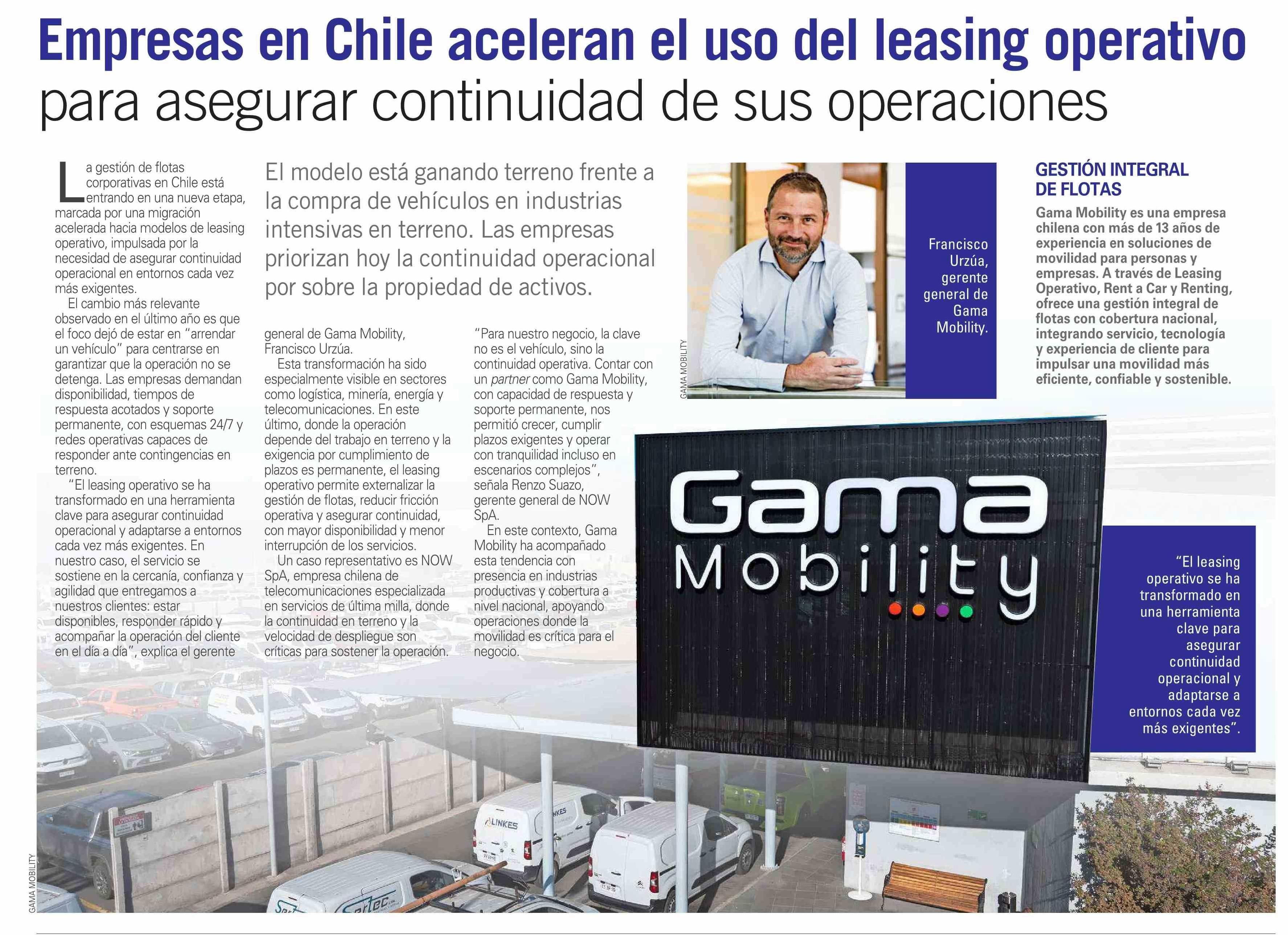 Empresas en Chile aceleran el uso del leasing operativo para asegurar continuidad de sus operaciones