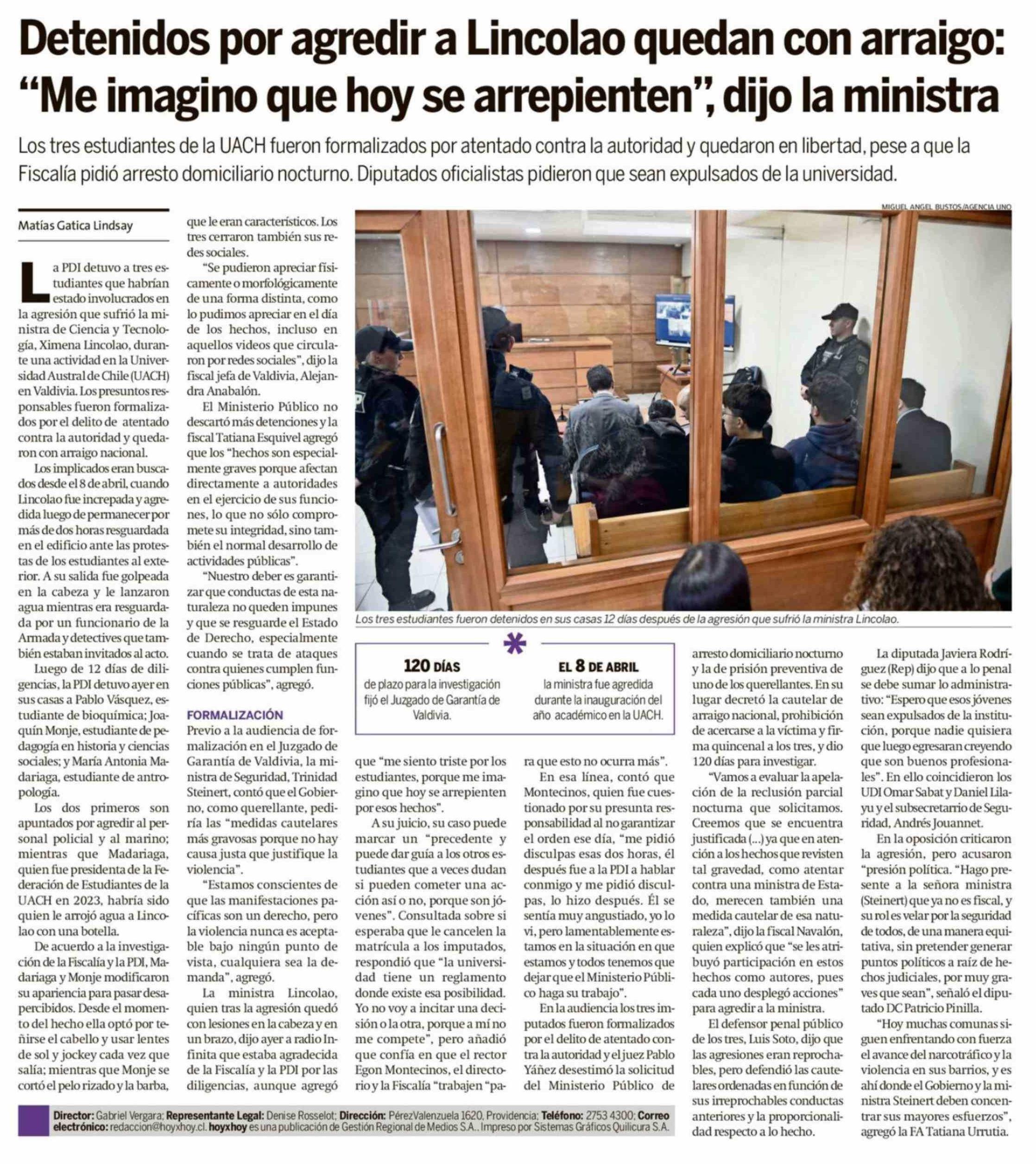 Título: Detenidos por agredir a Lincolao quedan con arraigo: "Me imagino que hoy se arrepienten", dijo la ministra