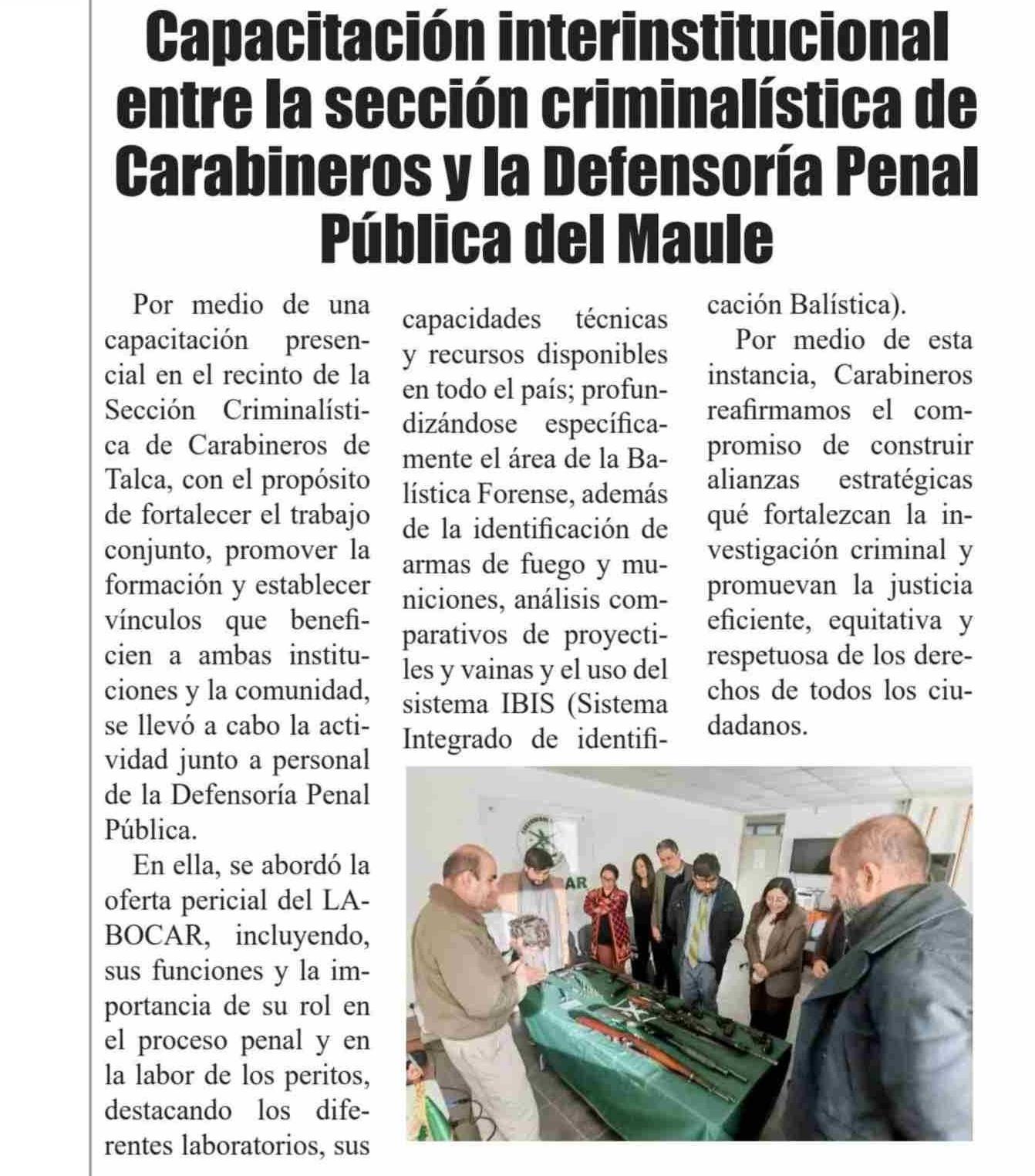 Capacitación interinstitucional entre la sección criminalística de Carabineros y la Defensoría Penal Pública del Maule