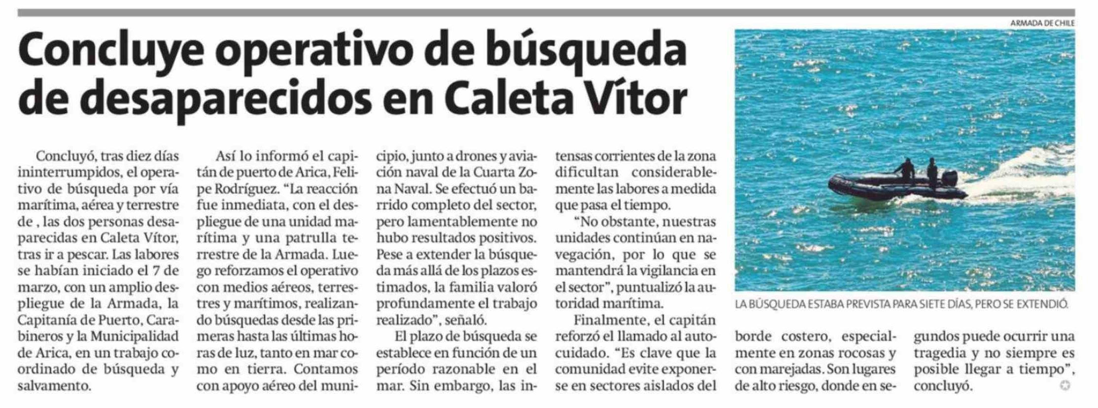 Concluye operativo de búsqueda de desaparecidos en Caleta Vítor