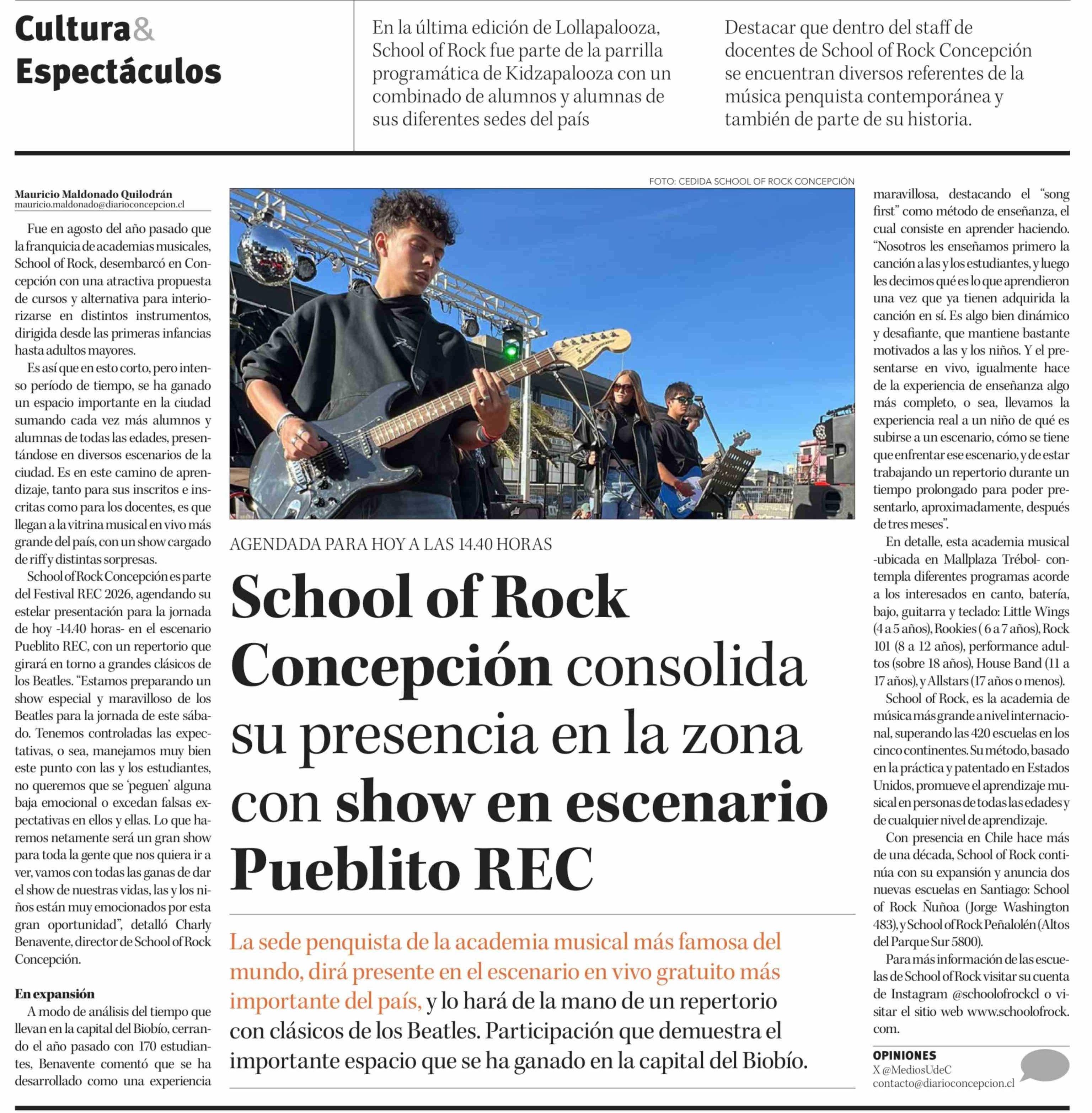 School of Rock Concepción consolida su presencia en la zona con show en escenario Pueblito REC