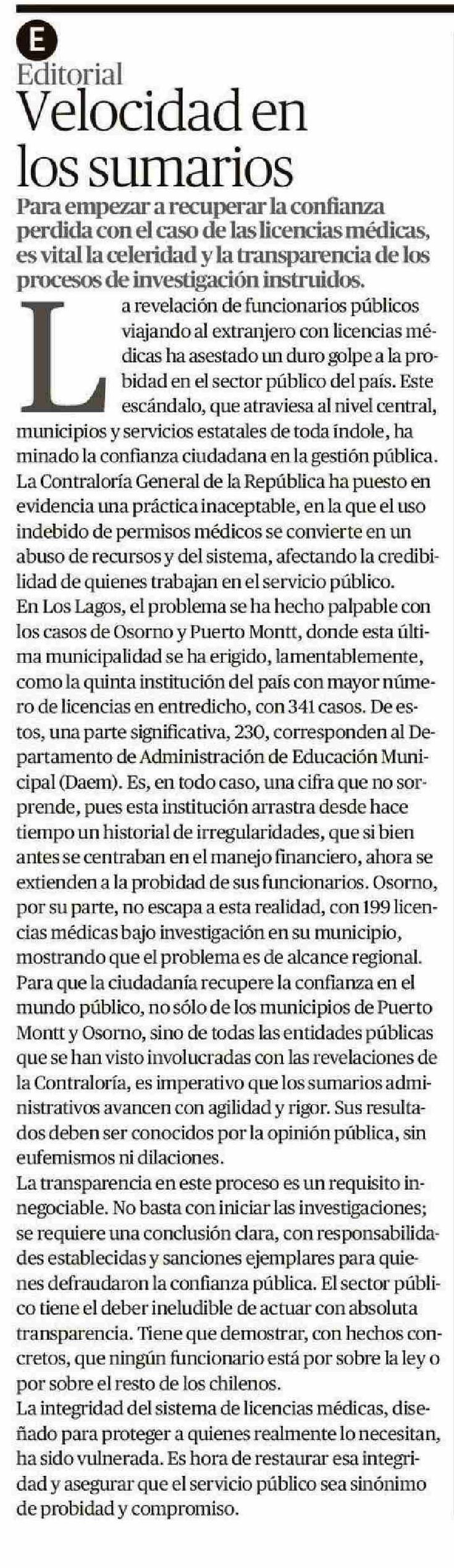 EDITORIAL: Velocidad en sumarios
